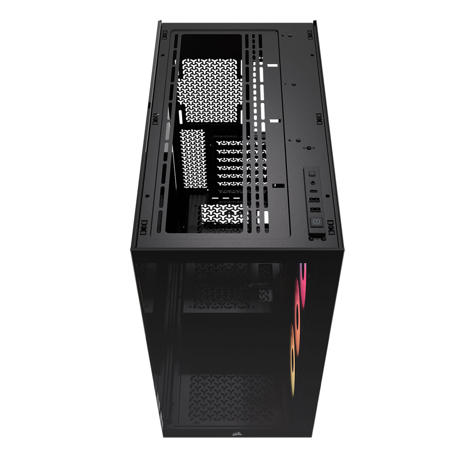 Αν και πρόκειται για mid-tower, η CORSAIR σχεδίασε κατά τέτοιο τρόπο το εσωτερικό ώστε να μπορεί να δεχτεί από μητρικές κάρτες τύπου Mini-ITX, Micro-ATX, ATX αλλά και E-ATX (305mm x 277mm). Έρχεται με τρεις προεγκατεστημένους ανεμιστήρες RS120-R ARGB, μπορεί να φιλοξενήσει μεγάλες κάρτες γραφικών (έως 425mm), CPU coolers με μέγιστο ύψος 170mm και τροφοδοτικά ΑΤΧ με μήκος έως και 180mm.