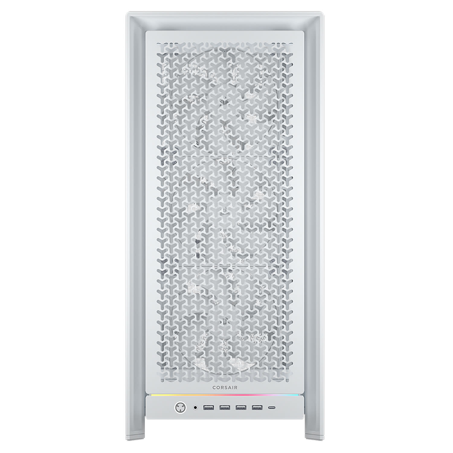 Το κουτί της CORSAIR διαθέτει ένα σύγχρονο μπροστινό πάνελ I/O που απλοποιεί τις συνδέσεις με εξωτερικά αποθ. μέσα και περιφερειακά — το οποίο ενσωματώνει μια θύρα USB 3.2 Gen 2 Type-C, τέσσερις θύρες USB 3.2 Gen 1 Type-A και μια συνδυαστικής υποδοχής ήχου/μικροφώνου (Combo Jack).