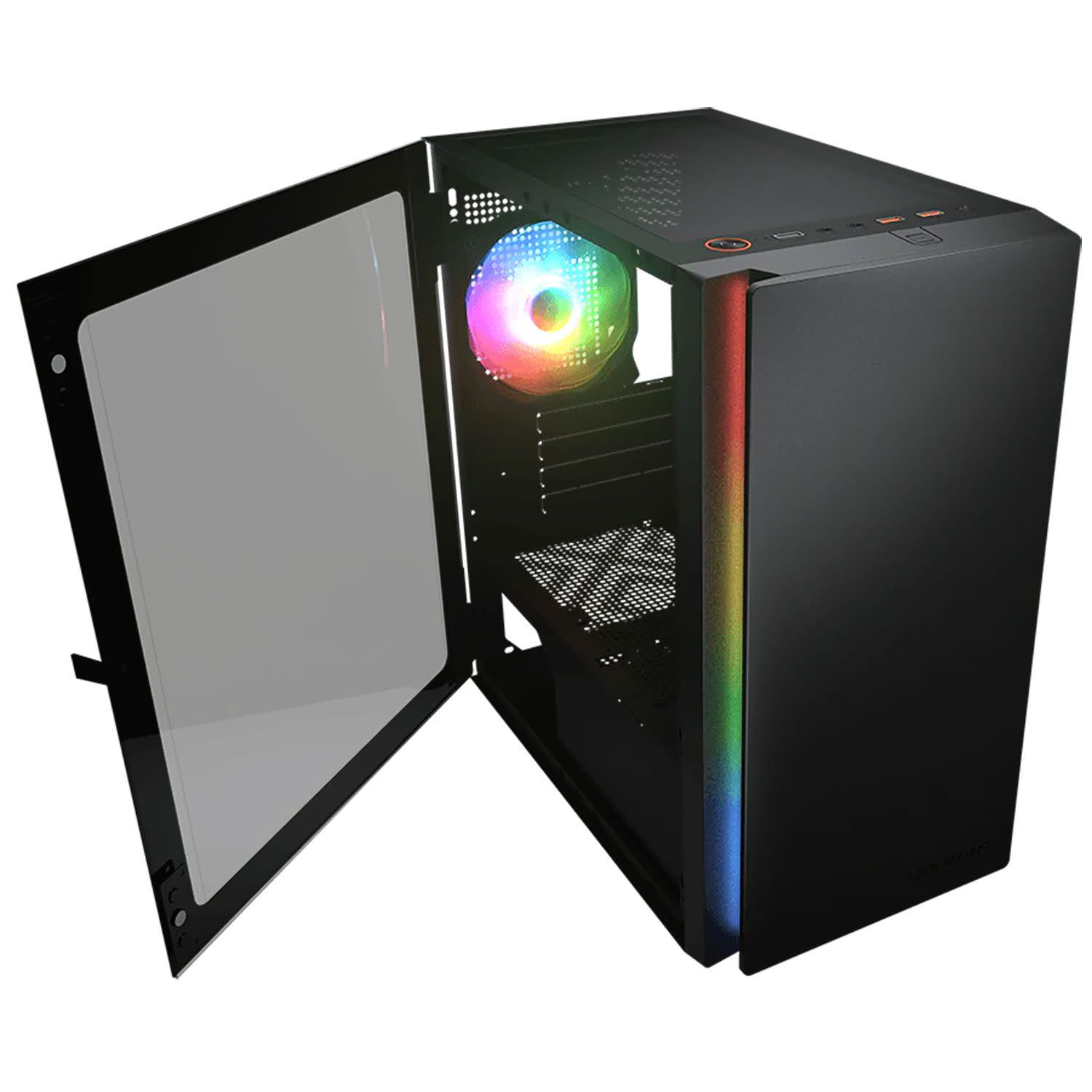 Οι καθαρές σχεδιαστικές γραμμές και το αρθρωτό πάνελ από σκληρυμένο γυαλί 3mm προσδίδουν μία εκπληκτική και μοντέρνα εμφάνιση, η οποία ενισχύεται από μία λωρίδα ARGB LED και έναν ανεμιστήρα ARGB 120mm (προεγκατεστημένος στο πίσω μέρος).