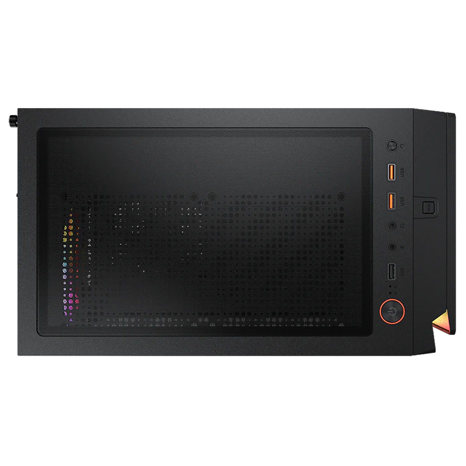 Στο επάνω μέρος ενσωματώνει I/O πάνελ με θύρες USB 3.0 (2x), USB 2.0 (1x), υποδοχή μικροφώνου και ήχου, κουμπί RGB και κουμπί RESET.