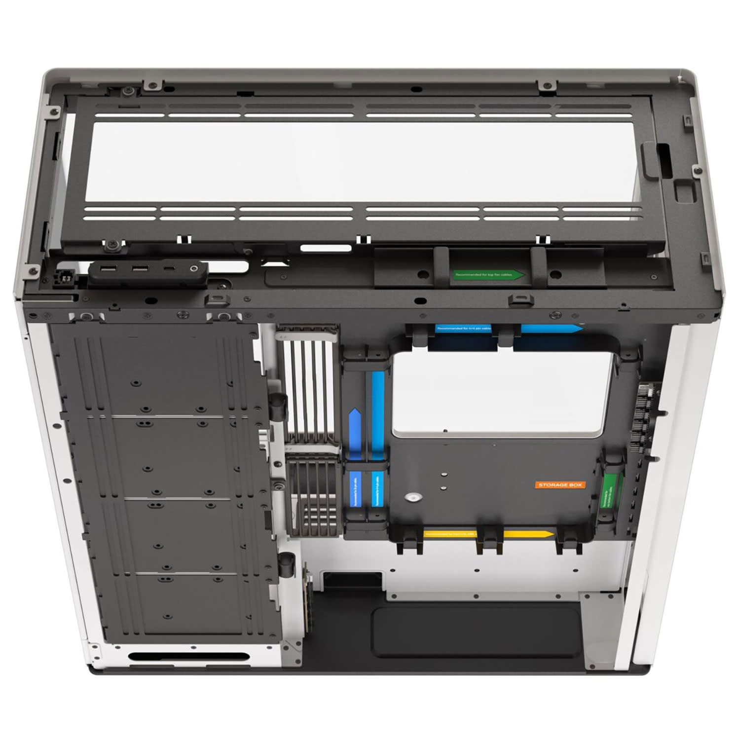 Το σύστημα δρομολόγησης SimpliCable και το hub για τη σύνδεση των ανεμιστήρων διαθέτουν αυλακωτούς οδηγούς από πάνω προς τα κάτω, καθιστώντας τη διαχείριση καλωδίων αβίαστη και καθαρή για ένα περισσότερο οργανωμένο εσωτερικό.
