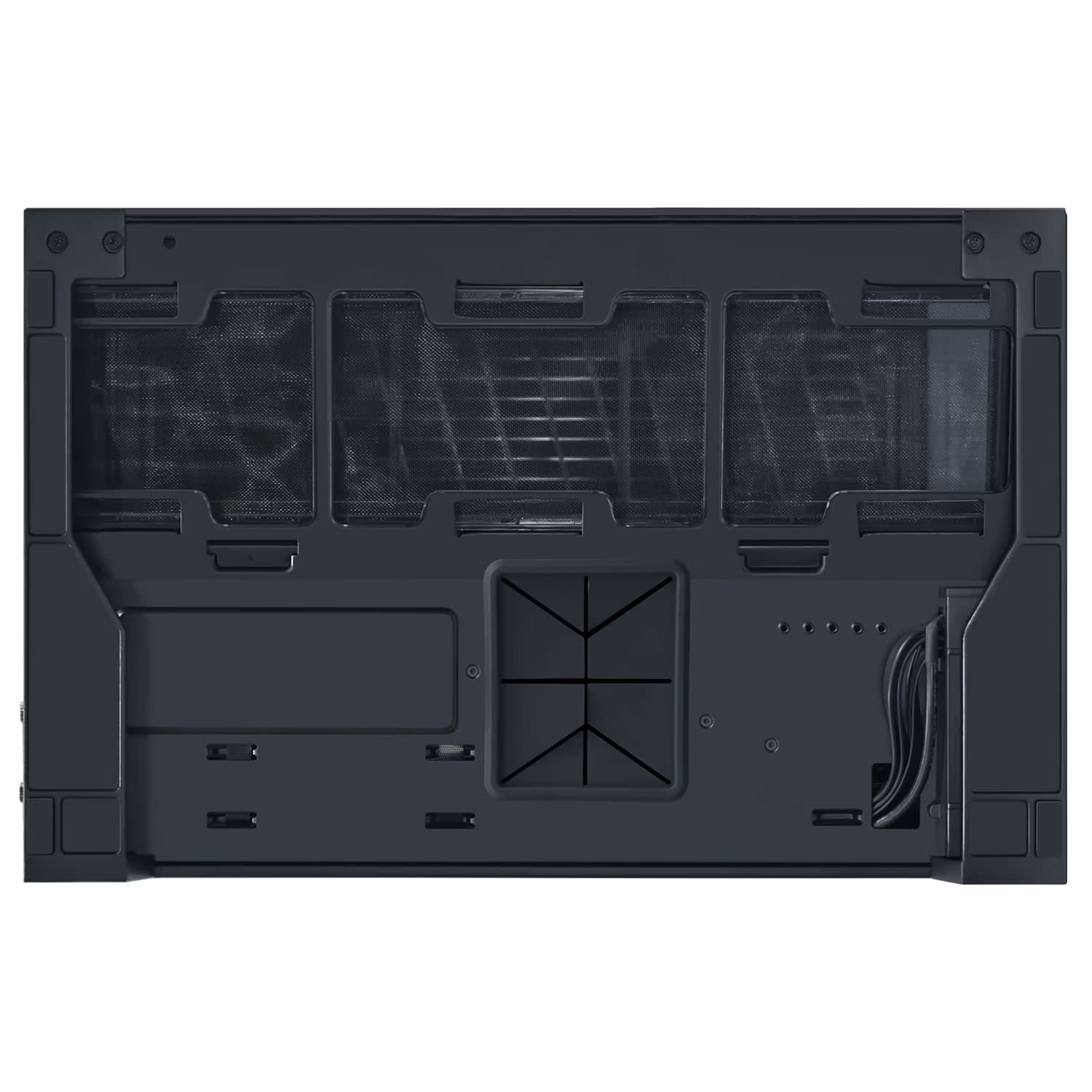 Ο χρήστης μπορεί να αφαιρέσει το I/O πάνελ με τις υποδοχές (2x USB 3.0 Type-A, 1x USB 3.2 Type-C®, 1x 3.5mm Audio, 1x Power Button) από το άνω τμήμα του κουτιού και να το προσαρμόσει στη βάση της πρόσοψης και το αντίθετο. Στη πρώτη περίπτωση, βελτιώνεται η θερμική αποδοτικότητα και η ευκολία μεταφοράς.