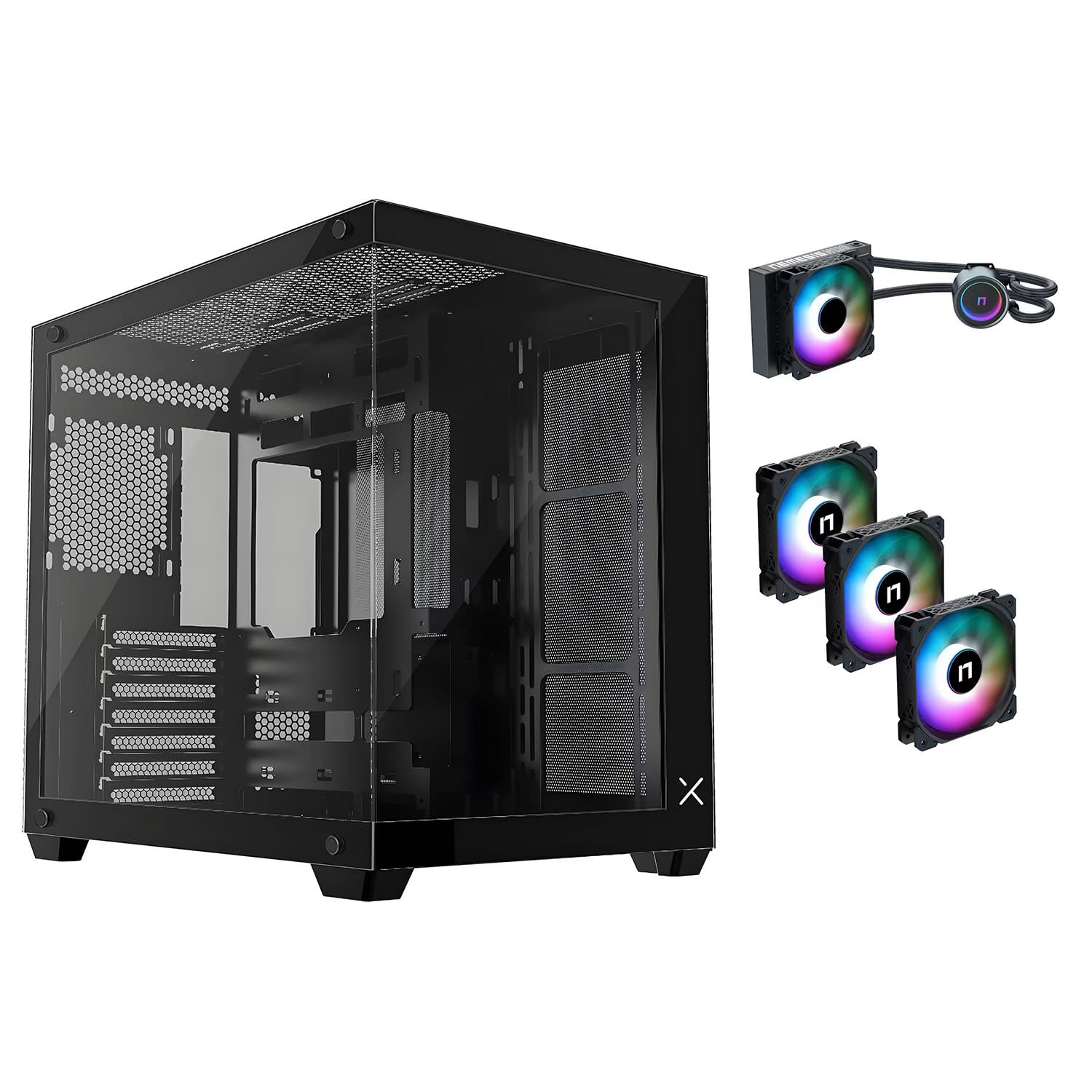 Τo bundle περιλαμβάνει το Turbo-X Spectra Full Tower BTF PC Case, το σύστημα υδρόψυξης Turbo-X Nemesis N120 CPU Cooler και το Turbo-X Nemesis Fan NF120 ARGB Triple Pack Black με Controller και Remote.