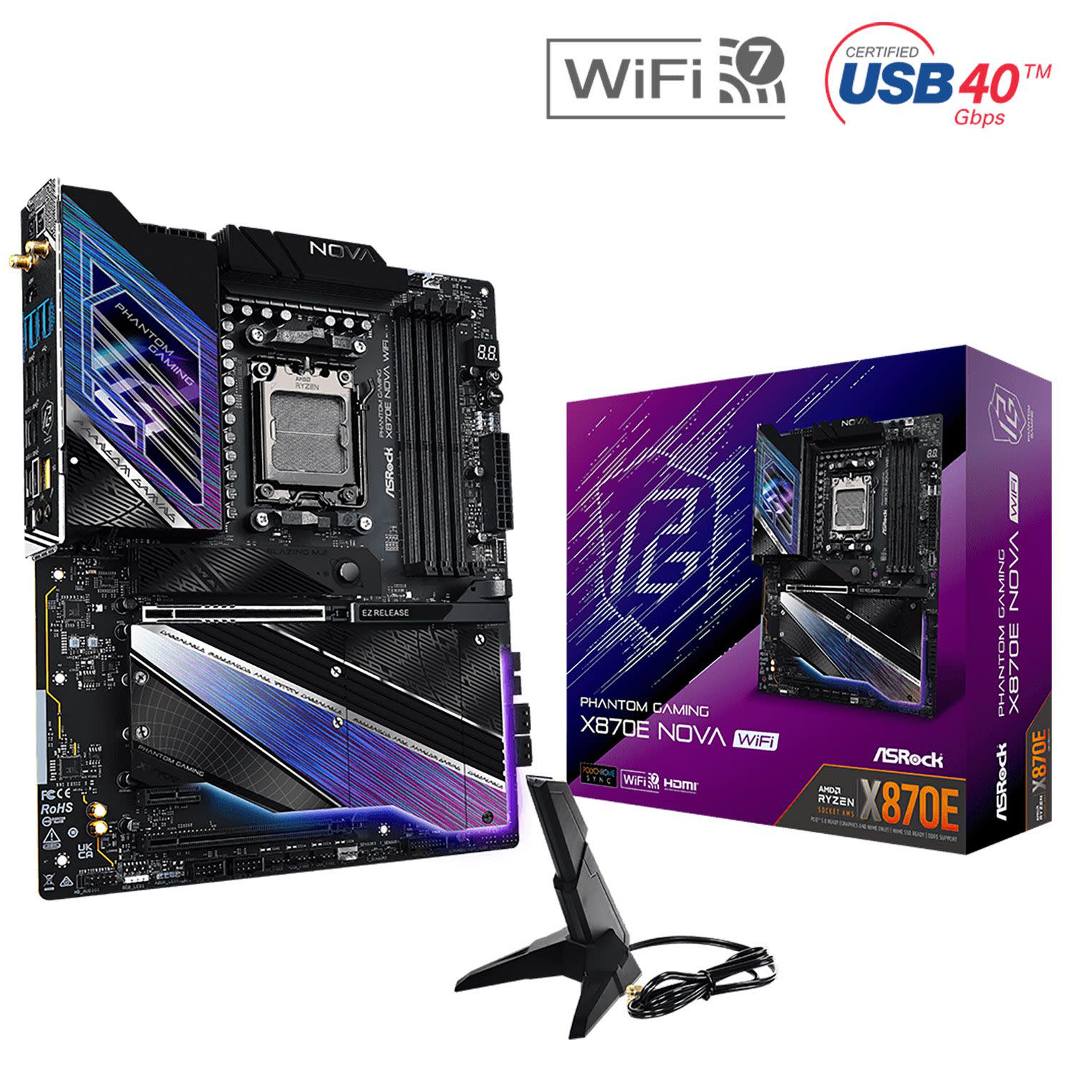 Με το ενσωματωμένο Wi-Fi 7, το X870E Nova WiFi προσφέρει κορυφαίες ταχύτητες και χαμηλή καθυστέρηση για απρόσκοπτο online gaming και streaming. Η νέα σχεδίαση κεραίας διασφαλίζει σταθερή σύνδεση ακόμα και στις πιο απαιτητικές συνθήκες.