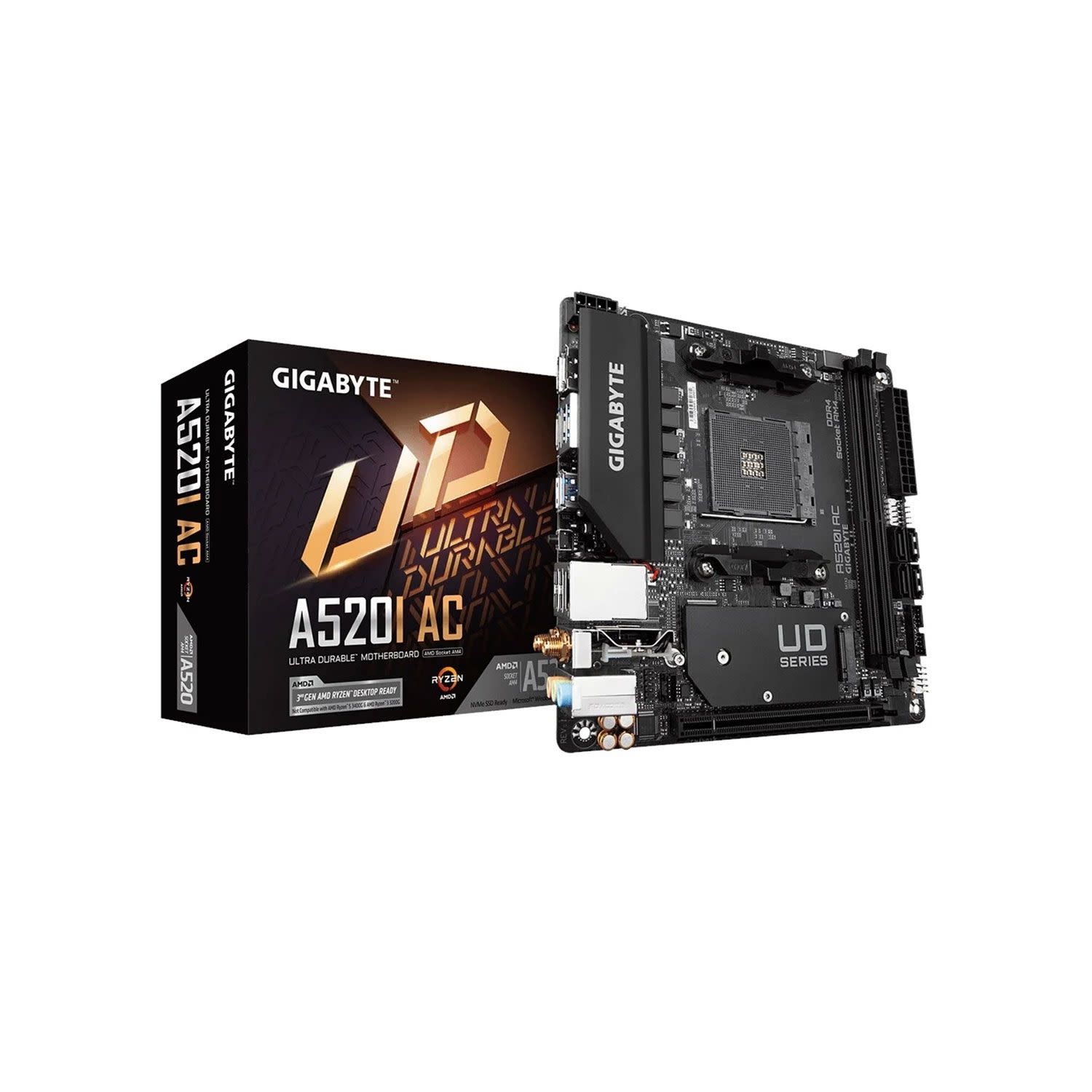 MEET THE A-TEAM: βασισμένη στο AMD® A520 Chipset και το Socket AM4, η Ultra Durable™ (8x Layer PCB) μητρική A520I AC της GIGABYTE είναι συμβατή με επεξεργαστές Ryzen™ 5000 Series/Ryzen™ 5000 G-Series/Ryzen™ 4000 G-Series και Ryzen™ 3000 Series.
