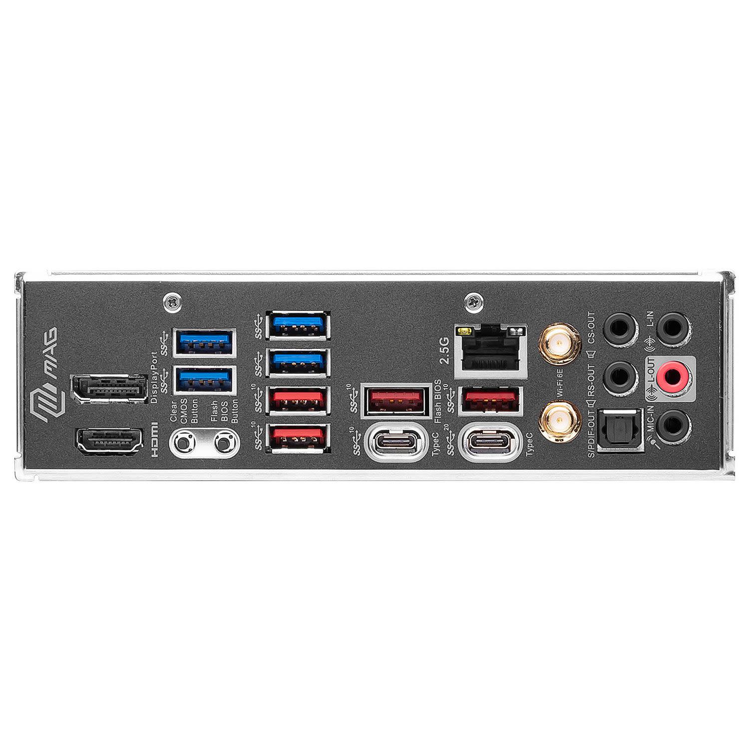 Στο Back I/O βρίσκονται 1x θύρα USB 3.2 Gen2x2 (Type-C, 20Gbps), 1x θύρα USB 3.2 Gen2 (Type-C, 10Gbps), 4x θύρες USB 3.2 Gen2 (Type-A, 10Gbps) και 4x θύρες USB 3.2 Gen2 (Type-A, 5Gbps). Επιπρόσθετα, παρέχεται συνδεσιμότητα Intel® 2.5Gbps LAN, Intel® Wi-Fi 6E και Bluetooth® 5.2, 8-Channel (7.1) HD Audio με σύστημα ήχου Audio Boost 5 και έξοδο S/PDIF, καθώς και έξοδοι εικόνας DisplayPort 1.4 και HDMI 2.1 για να αξιοποιήσεις με τον καλύτερο δυνατό τρόπο τα ενσωματωμένα στον επεξεργαστή γραφικά (εφόσον προσφέρονται).
