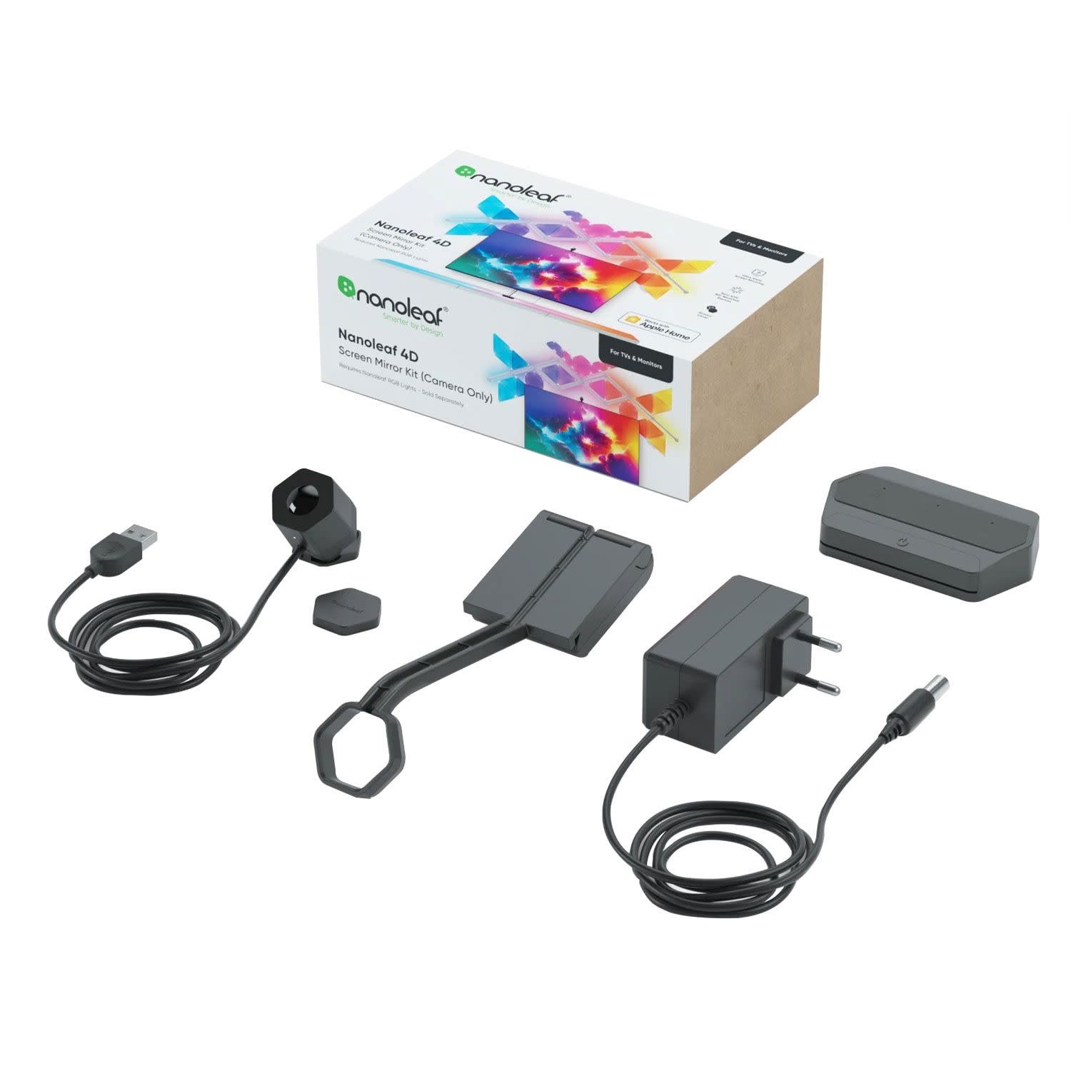 Nanoleaf 4D Screen Mirror Kit, το οποίο περιλαμβάνει μόνο την κάμερα και τα συνοδευτικά αξεσουάρ της. Έτοιμο για σύνδεση και χρήση με συμβατά Lightstrip Kits της Nanoleaf.