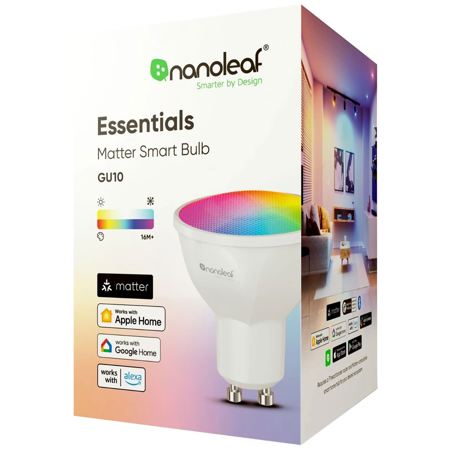 Δημιούργησε καταπληκτικό ατμοσφαιρικό φωτισμό σε οποιοδήποτε δωμάτιο με τον λαμπτήρα Nanoleaf Smart Wi-Fi LED GU10 Multicolor, με υποστήριξη Matter μέσω Thread. Yποστηρίζει 16 εκατομμύρια χρώματα καθώς και πολλαπλά χρώματα λευκών.