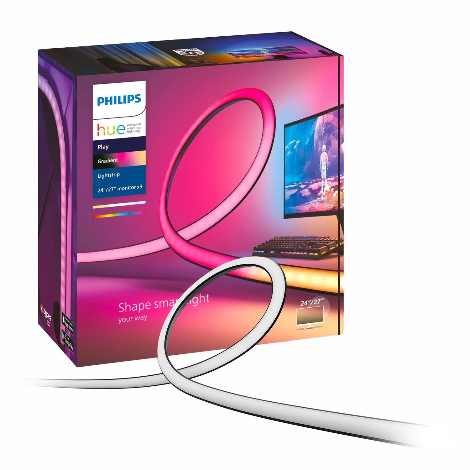 Απόκτησε αντιδραστικό, πολύχρωμο φως με διαβαθμίσεις για το gaming setup σου. Σύνδεσε το Hue Play Gradient Lightstrip στο πίσω μέρος έως και τριών οθονών 24"-27" με τις βάσεις που περιλαμβάνονται.
