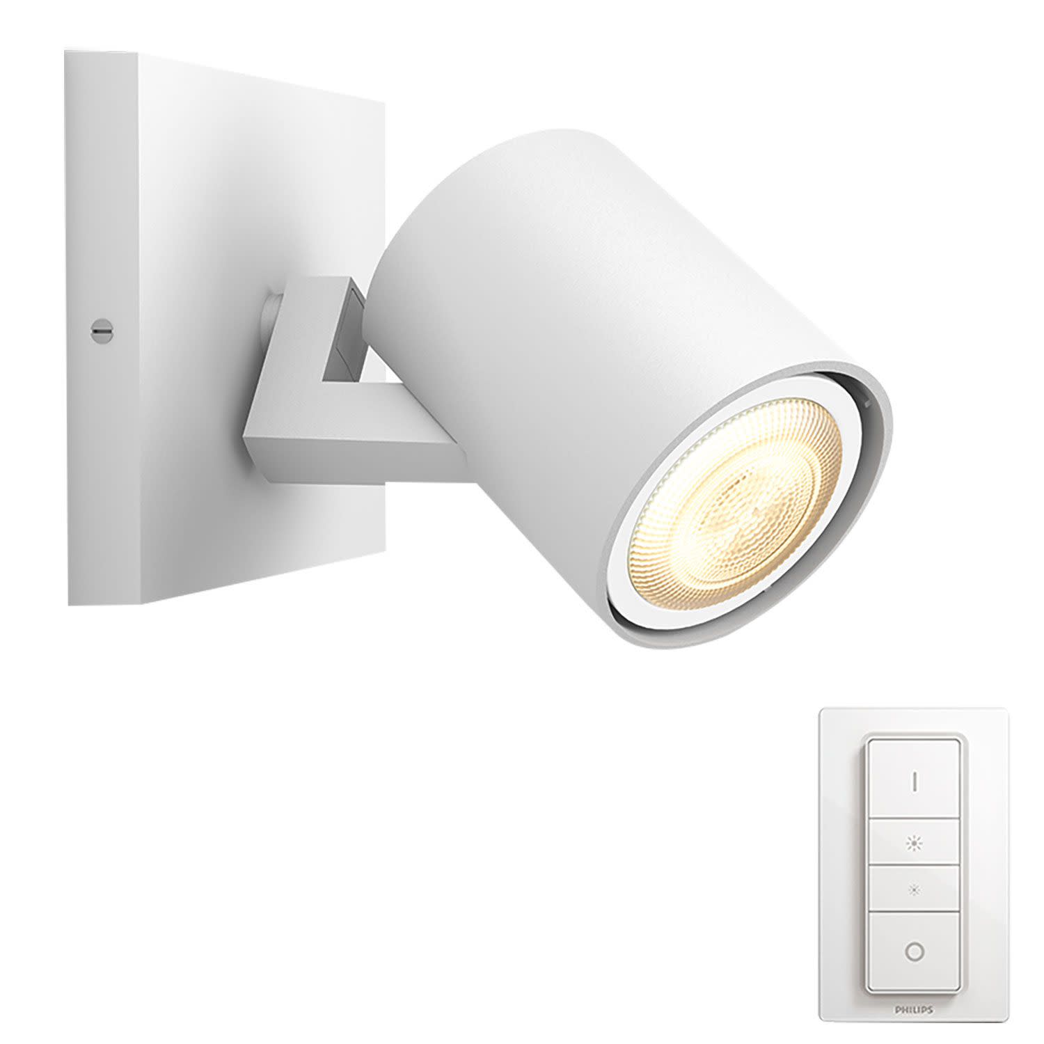 Μονό σποτ Philips Hue White ambiance Runner με ρυθμιζόμενη κεφαλή σε λευκό χρώμα. Προσφέρει θερμό έως ψυχρό λευκό φως (περιλαμβάνεται λαμπτήρας LED GU10 και ροοστάτης - διακόπτης).