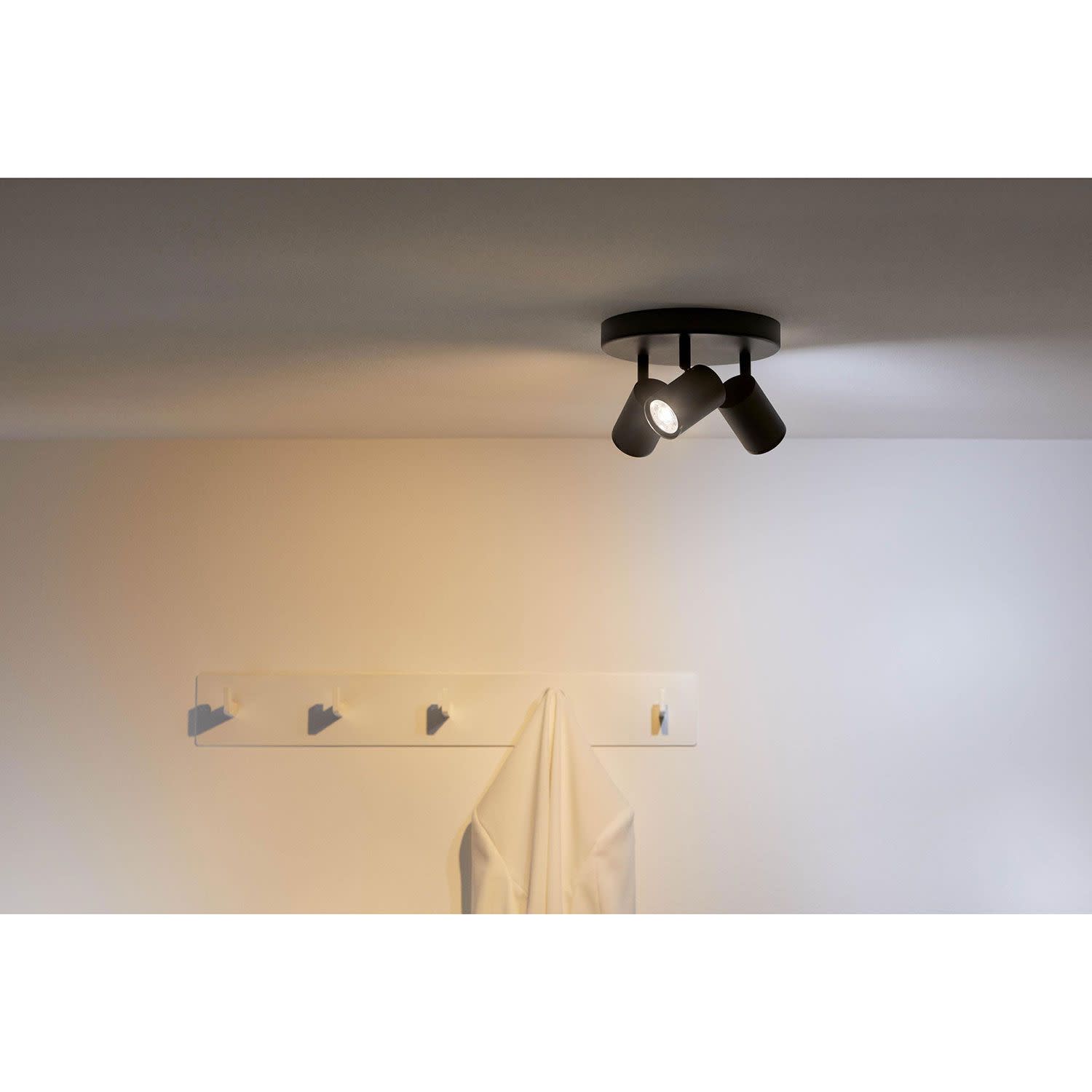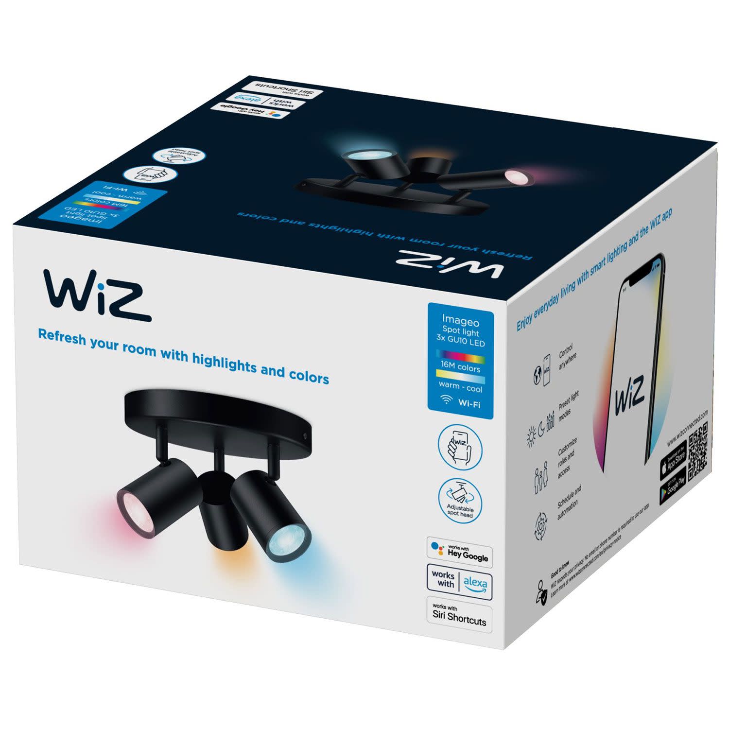 Με κομψό, μοντέρνο σχεδιασμό και μεταλλική κατασκευή, η κυκλική βάση οροφής WiZ Imageo με τρία έξυπνα και ρυθμιζόμενα σποτ σε μαύρο χρώμα προσφέρει πολλές διαφορετικές επιλογές για να πλημμυρίσει ο χώρος σου με υπέροχο έγχρωμο φως ή ζεστό έως ψυχρό λευκό φως (από 2.200K έως 6.500K, φωτεινότητας έως 345 lumens) και να δημιουργήσεις μία υπέροχη ατμόσφαιρα.
