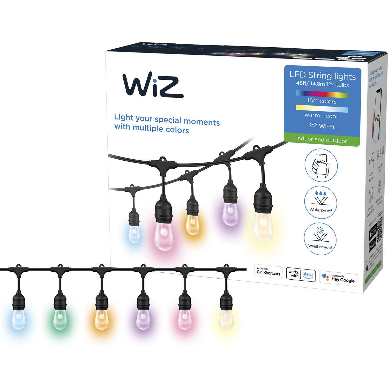 Αδιάβροχα φώτα String χαμηλής τάσης από τη WiZ με προσαρμοζόμενο φωτισμό και πλήρες εύρος χρωμάτων. Χρησιμοποιούνται στο υπάρχον δίκτυο WiFi και ελέγχονται με το WiZ app ή τη φωνή σας.
