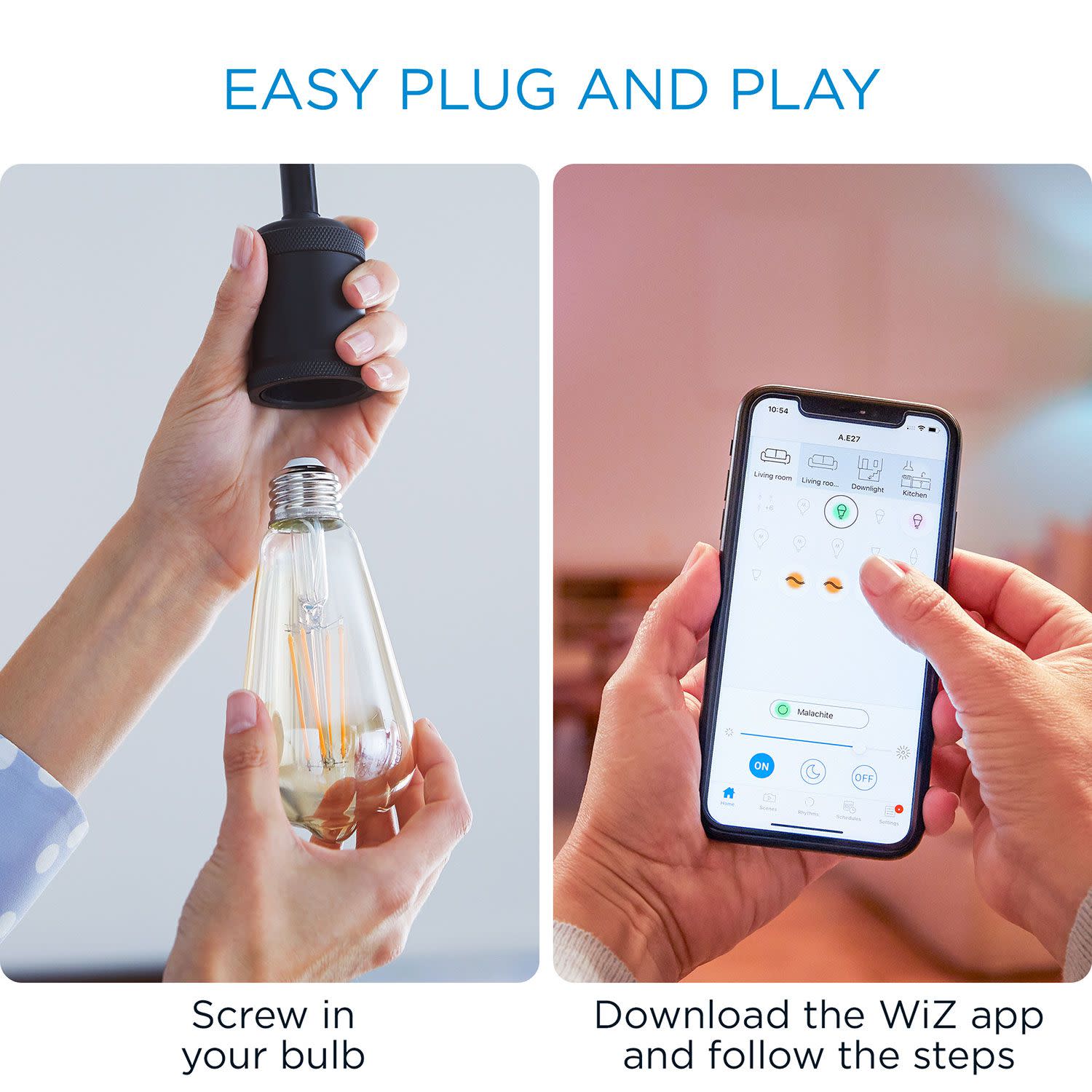 Η λάμπα WiZ LED ST64 τύπου Filament συνδυάζει τη ρετρό αισθητική με όλα τα πλεονεκτήματα των σύγχρονων λαμπτήρων LED (Lighting Emitting Diode) και επομένως είναι ιδιαίτερα οικονομική και φιλική στο περιβάλλον ενώ παράλληλα υποστηρίζει «έξυπνες λειτουργίες».