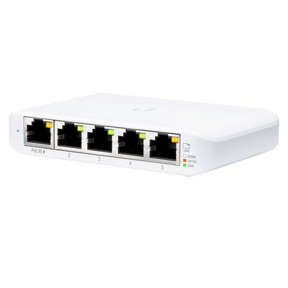 Το Switch Flex Mini (USW Flex Mini) της Ubiquiti Networks είναι ένα πλήρως διαχειριζόμενο Layer 2 Switch με 5 θύρες GbE RJ45 (10/100/1000 Mbps), συμπεριλαμβανομένης μίας εισόδου PoE 802.3af.
