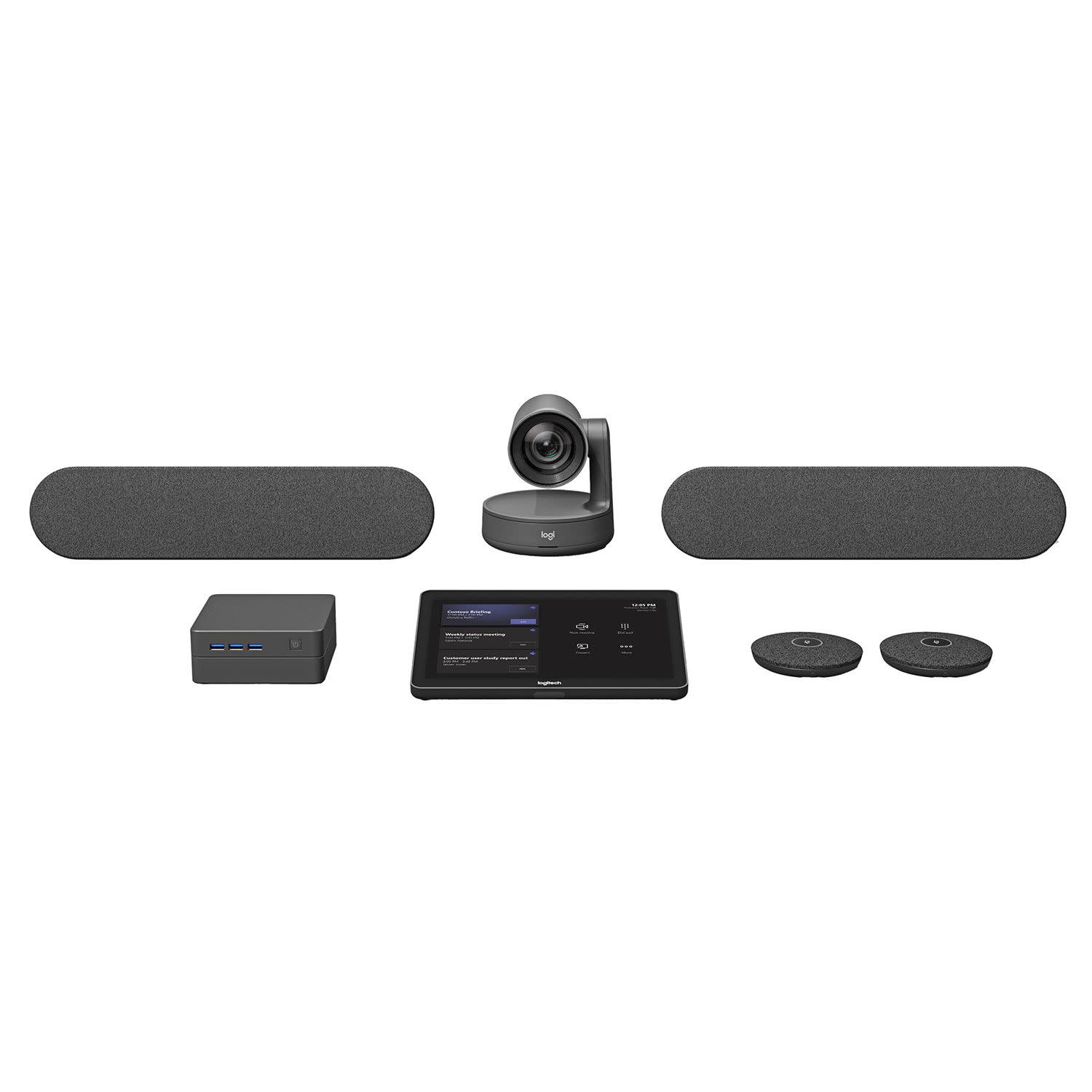 Κάθε λύση περιλαμβάνει όλα όσα χρειάζεστε από άποψη εξοπλισμού ανάλογα το μέγεθος της αίθουσας τηλεδιάσκεψης. Οι προδιαμορφωμένες λύσεις της Logitech περιλαμβάνουν mini PC και βάση στήριξης PC με συστήματα συγκράτησης καλωδίων για γρήγορη και απλή εγκατάσταση και το Logitech Tap, για συμμετοχή με ένα άγγιγμα στη τηλεδιάσκεψη, για εύκολη κοινοποίηση περιεχομένου κ.ά.