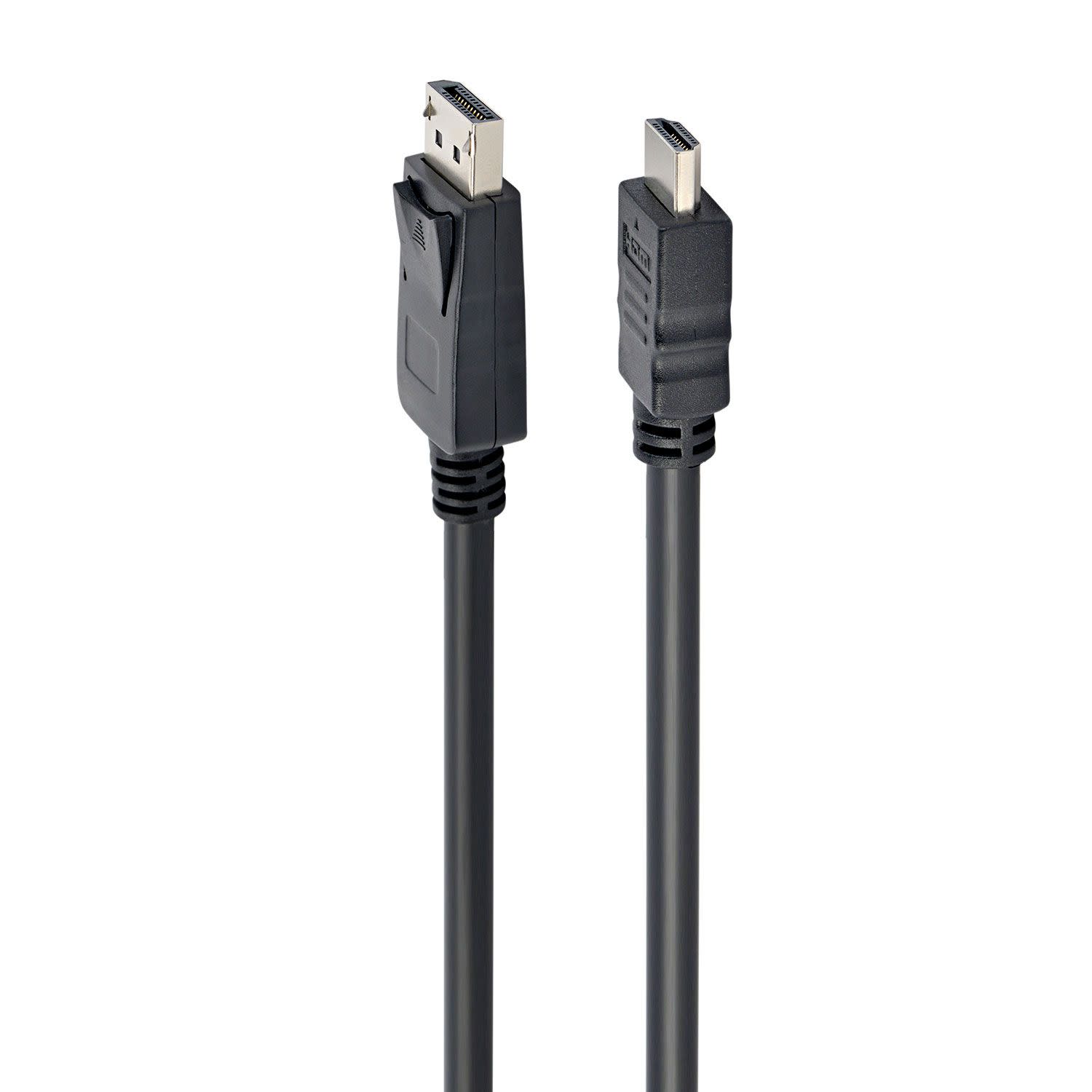 Καλώδιο μήκους 3 μέτρων DisplayPort (αρσενικό) σε HDMI (αρσενικό τύπου Α) με ενσωματωμένο IC στην υποδοχή, σε μαύρο χρώμα.