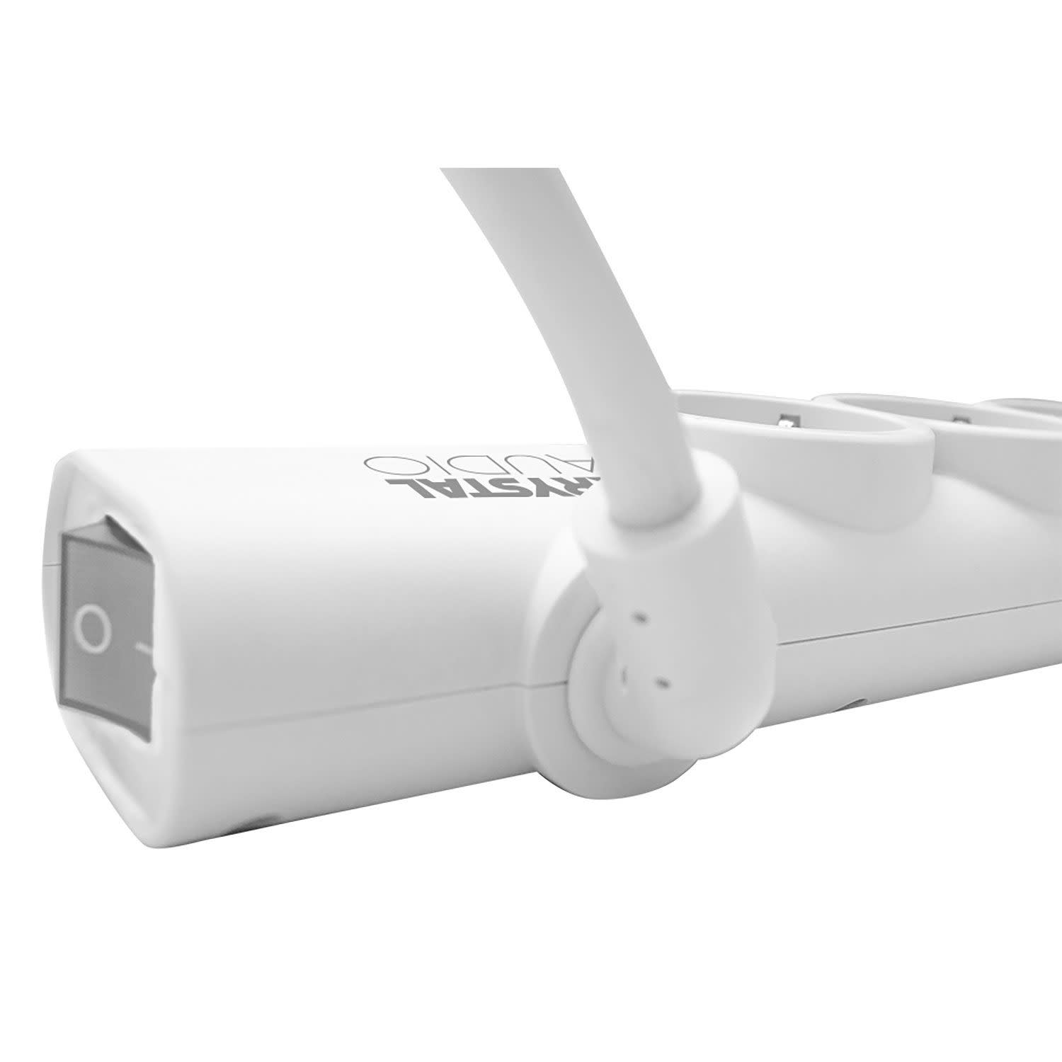 Πολύπριζο CRYSTAL AUDIO Elegance PSEL4S σε λευκό χρώμα, με έξι (6) υποδοχές σούκο, διακόπτης λειτουργίας και μηχανισμό περιστροφής καλωδίου.