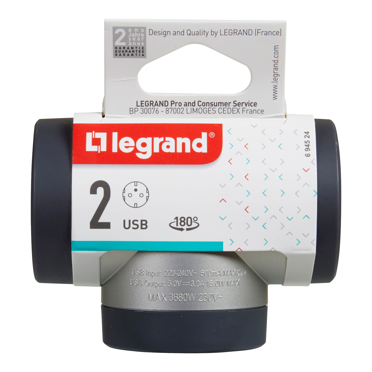 Legrand Πολύπριζο 2 Θέσεων Σούκο USB A+C