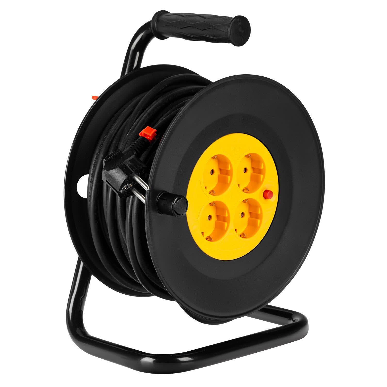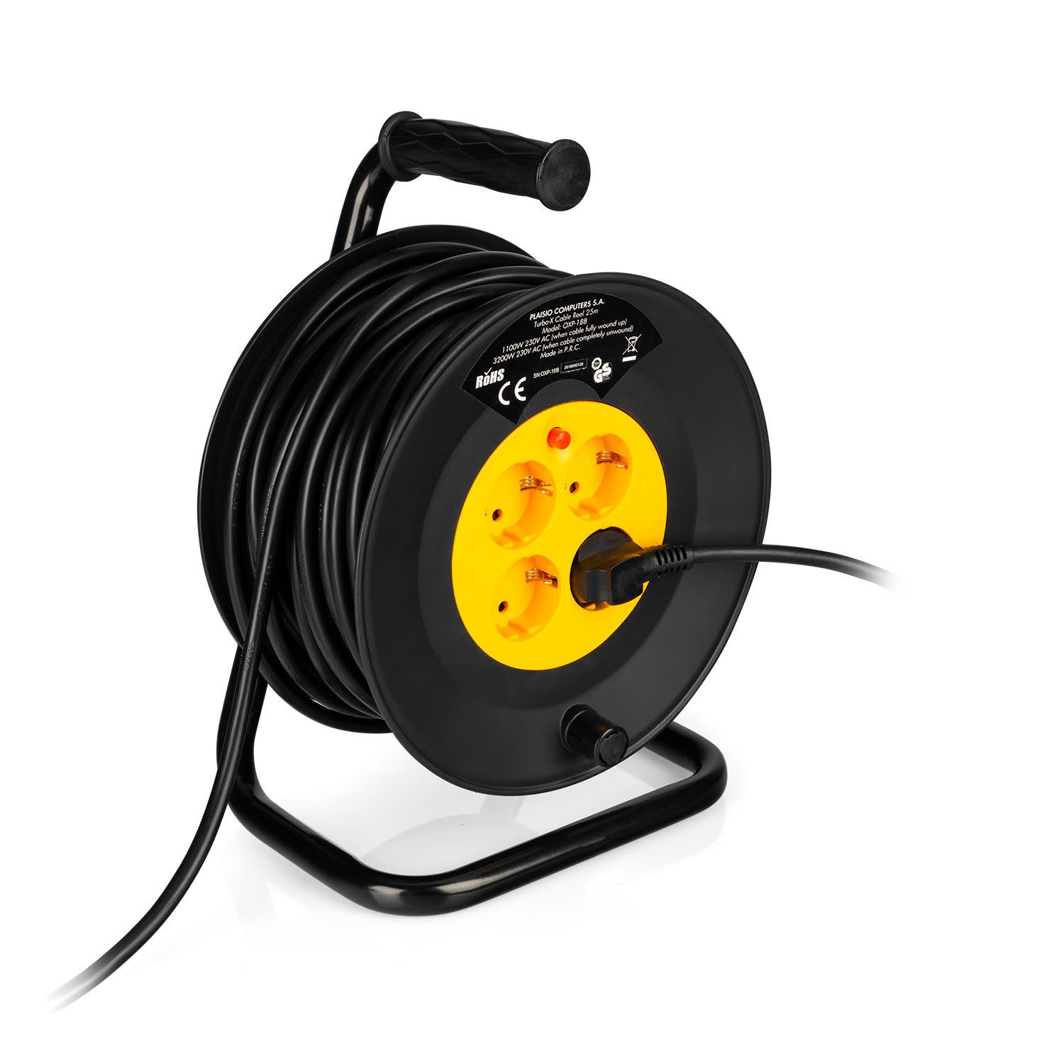 Πρακτικό φορητό στροφείο ανοικτού τύπου, με καλώδιο ρεύματος μήκους 25 μέτρων, για να χρησιμοποιείς ηλεκτρικές συσκευές σου από απόσταση