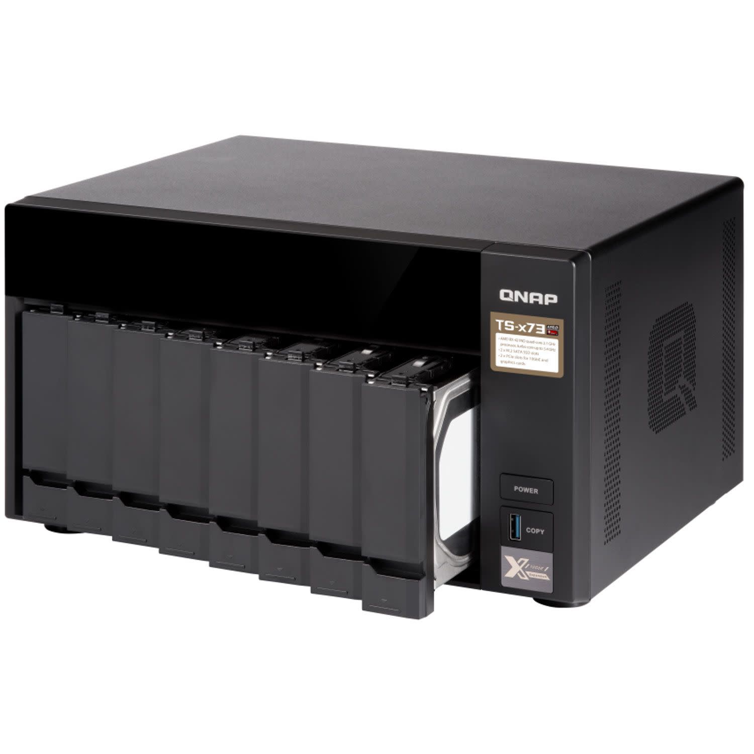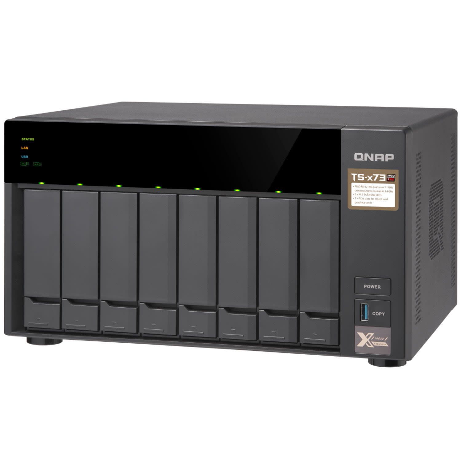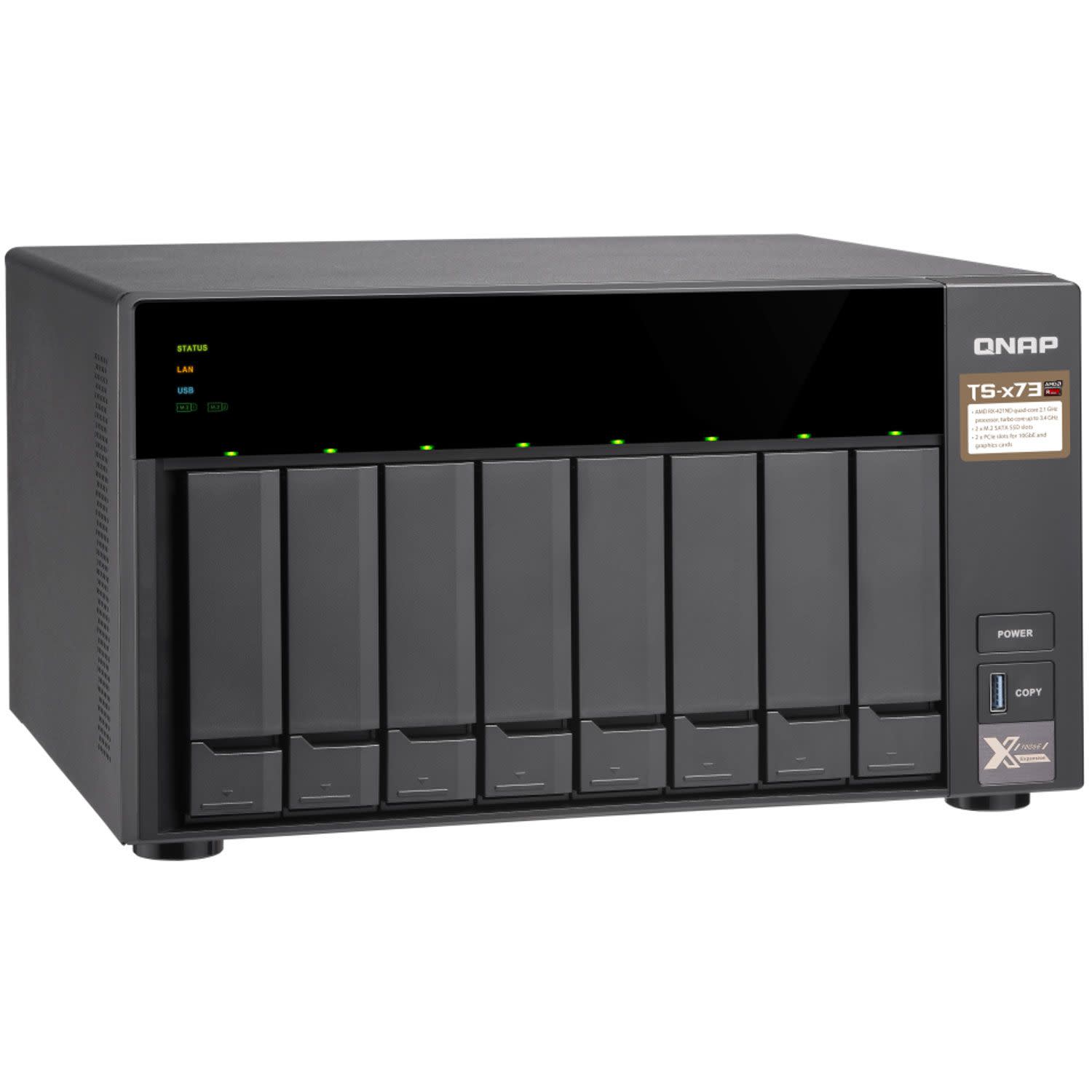 Τροφοδοτούμενο από έναν 4πύρηνο επεξεργαστή AMD RX-421ND (R-Series), με βασική συχνότητα λειτουργία στα 2,1GHz (Turbo Core έως και 3.4 GHz), το υψηλής ποιότητας TS-873 NAS της QNAP σου επιτρέπει να αναπτύξεις ευέλικτα ένα ευρύ φάσμα εφαρμογών με πιο προσιτό προϋπολογισμό.