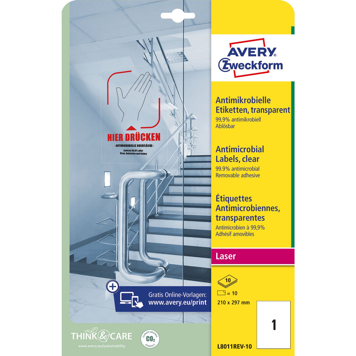 Avery Zweckform Αντικροβιακές Ετικέτες Διάφανες Α4 (210x297mm) L8001REV-10