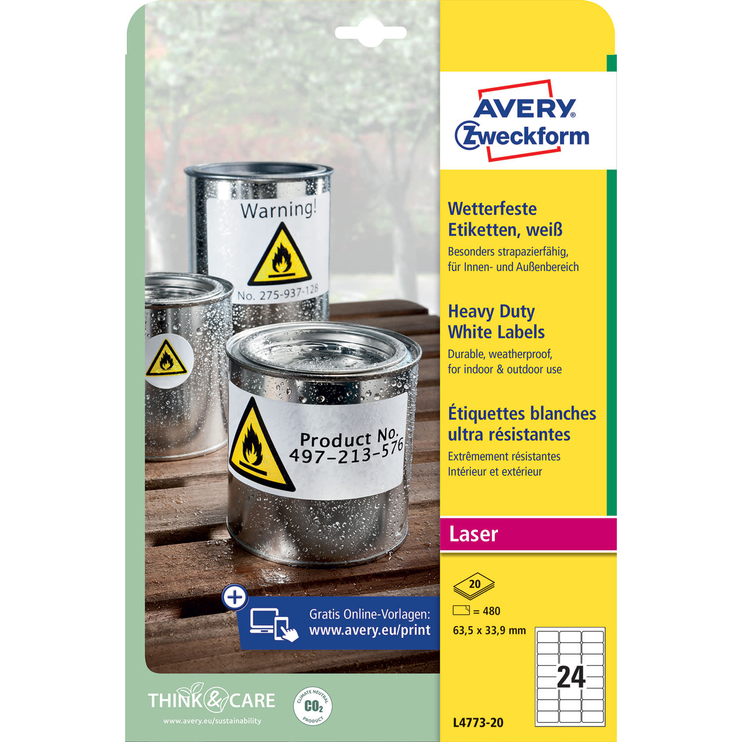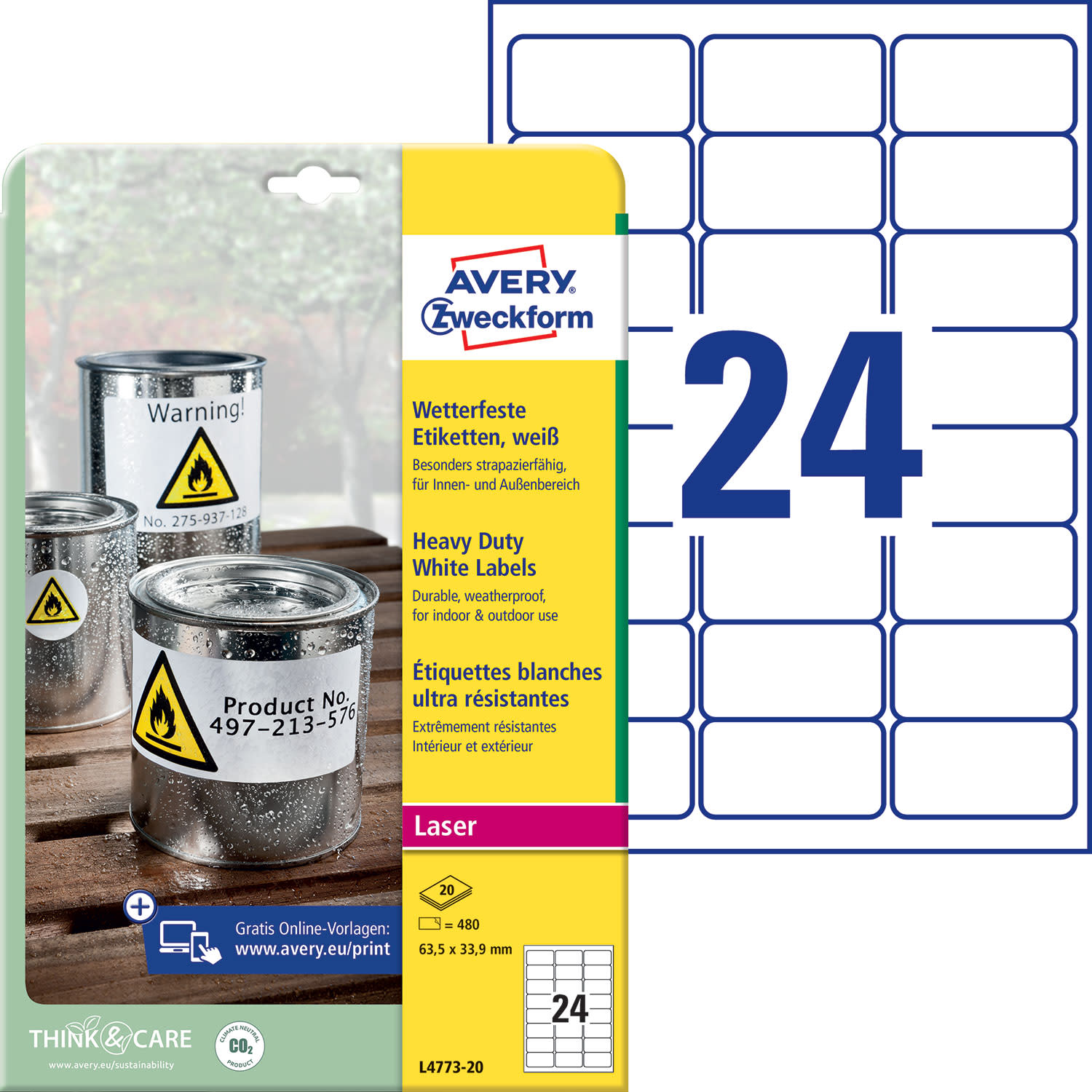 Avery Zweckform Ετικέτες Heavy Duty Α4 L4773-20 ( 63.5 x 33.9 mm )