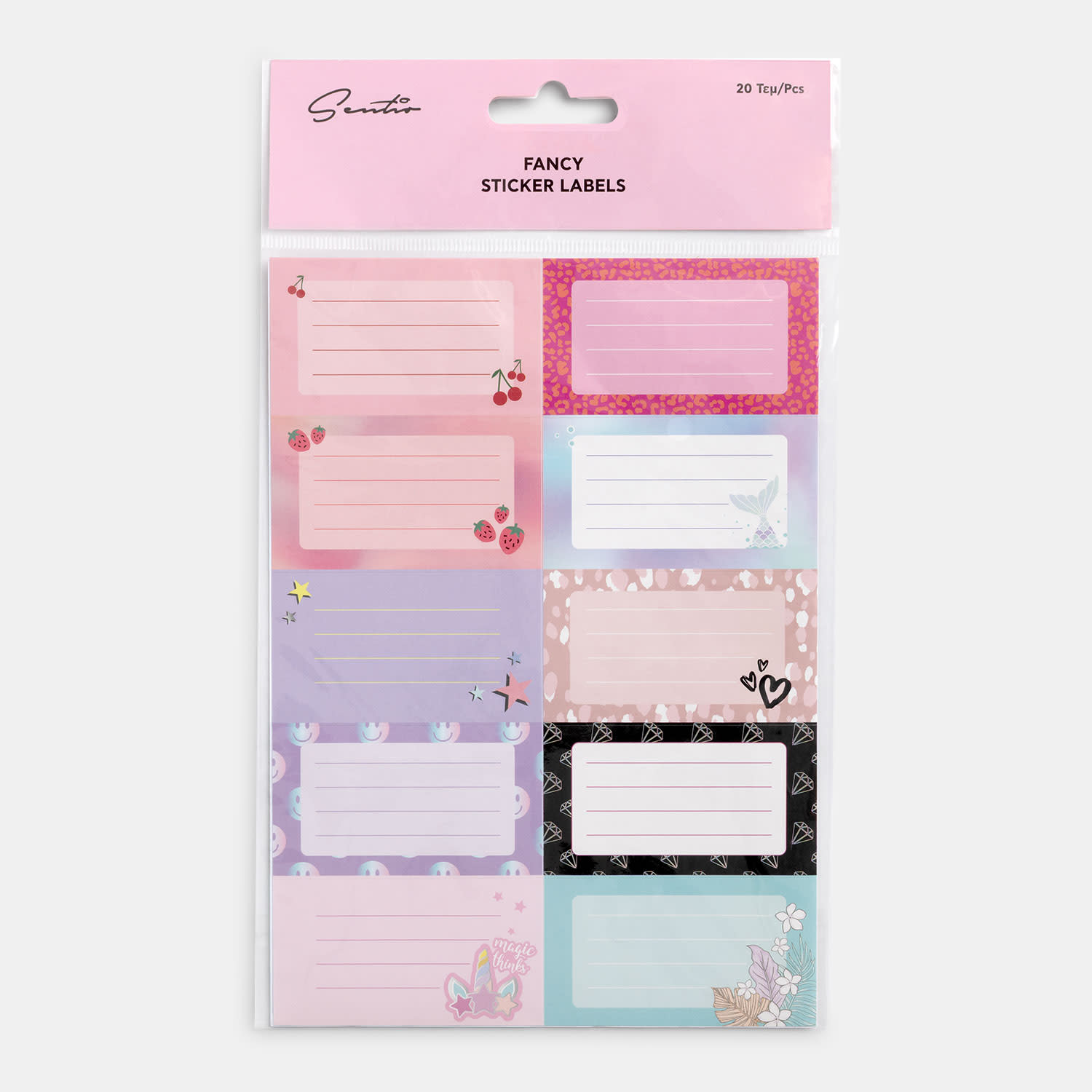 Αυτοκόλλητες ετικέτες Fancy από την Sentio, για να δώσεις στα τετράδια και τα βιβλία, τη δική σου μοναδική ταυτότητα! Στη συσκευασία θα βρεις 20 ετικέτες, που θα κάνουν τα πράγματά σου να ξεχωρίζουν!