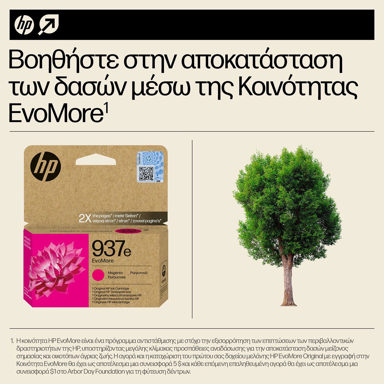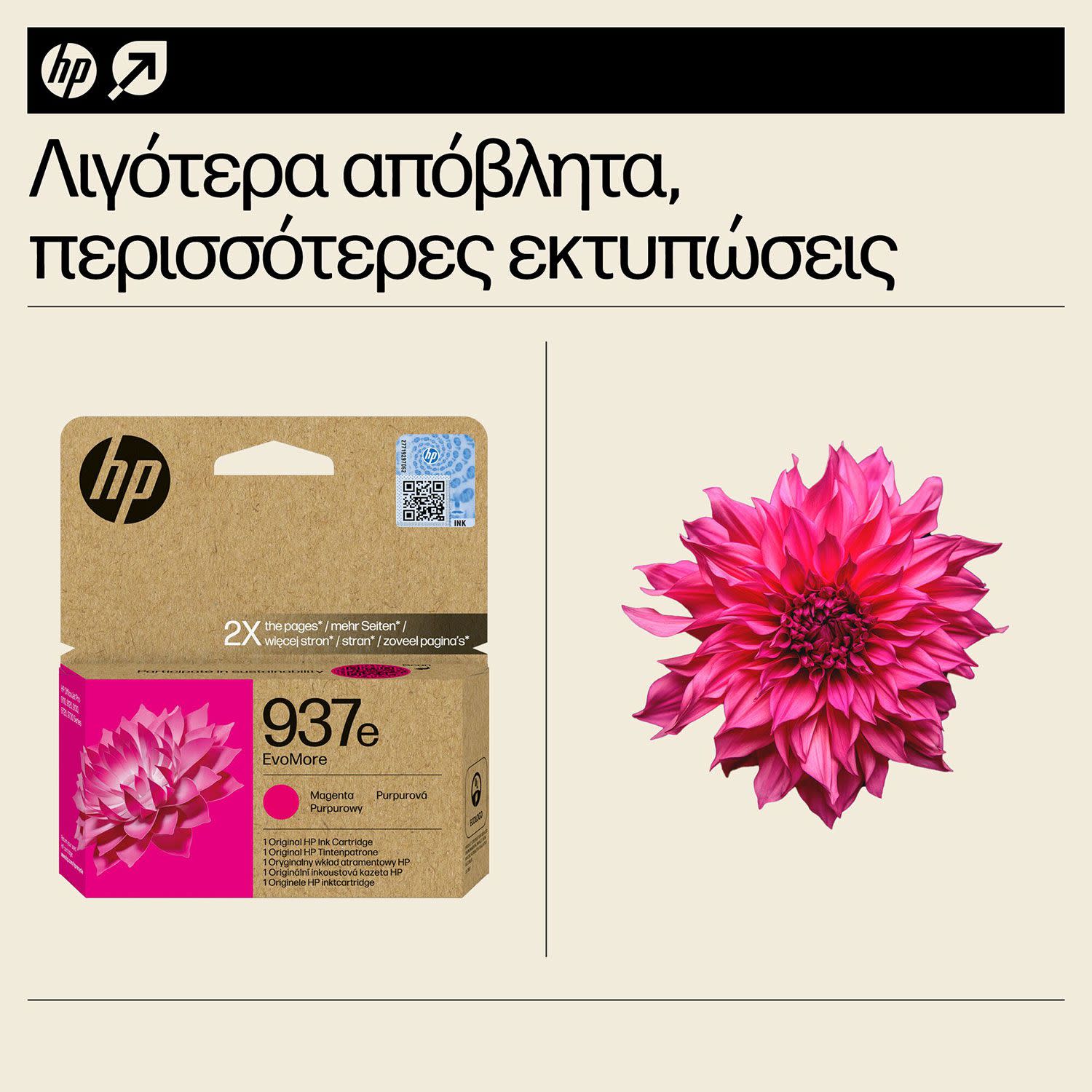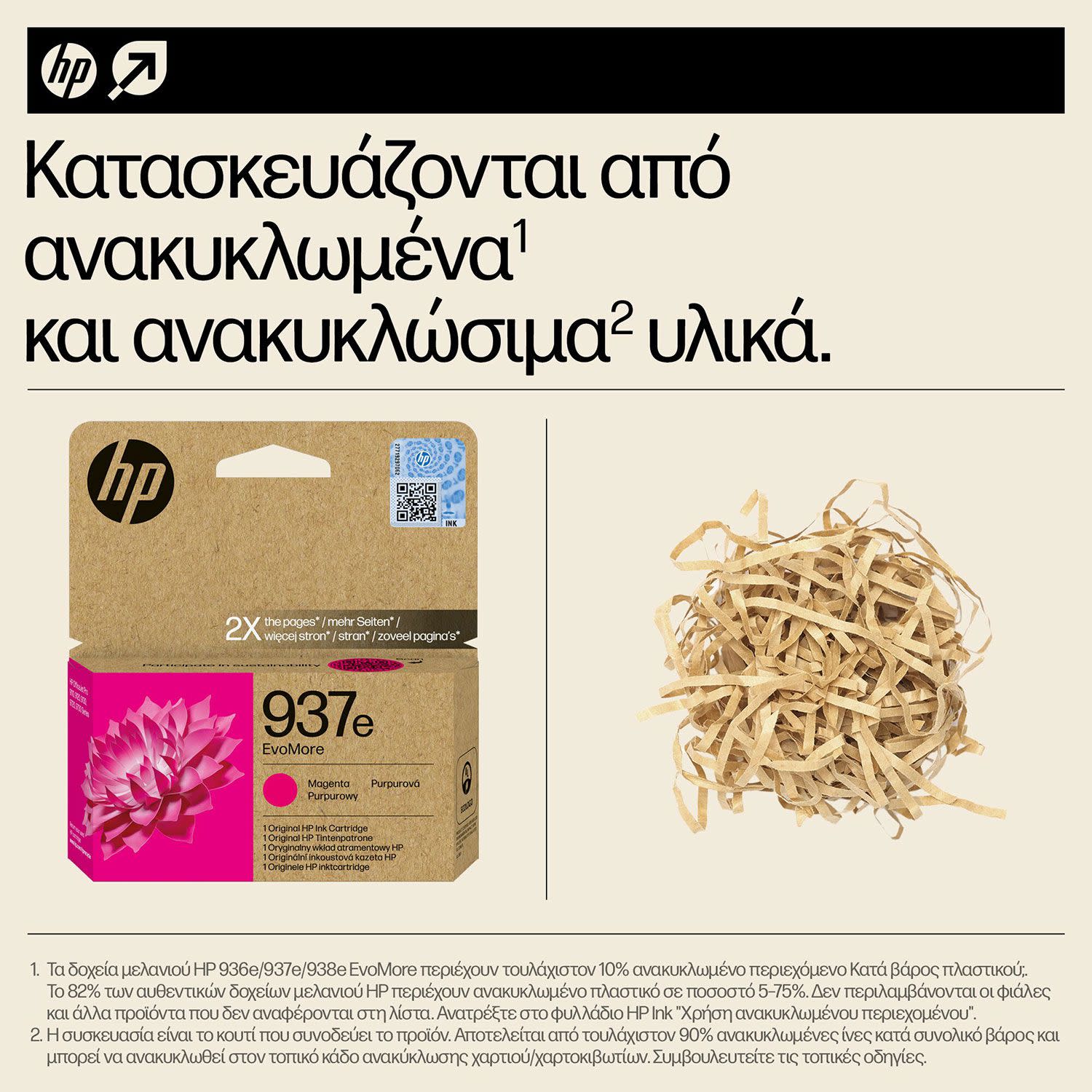 Μελάνι HP 937e EvoMore Magenta για εκτυπώσεις υψηλής ποιότητας με ακρίβεια σε εικόνες και γραφικά. Απόλαυσε ρεαλιστικά αποτελέσματα στις φωτογραφίες σου με μελάνια ειδικά σχεδιασμένα για να καλύπτουν τις εκτυπωτικές σου ανάγκες. Σχεδιασμένα για να εκτυπώνουν διπλάσιες σελίδες σε σύγκριση με τα τυπικά δοχεία, με μικρότερο αποτύπωμα άνθρακα και εύκολα ανακυκλώσιμα,  τα αυθεντικά δοχεία μελανιού HP EvoMore συνδυάζουν τη θρυλική απόδοση και ποιότητα της HP με πρόσθετα χαρακτηριστικά βιωσιμότητας.