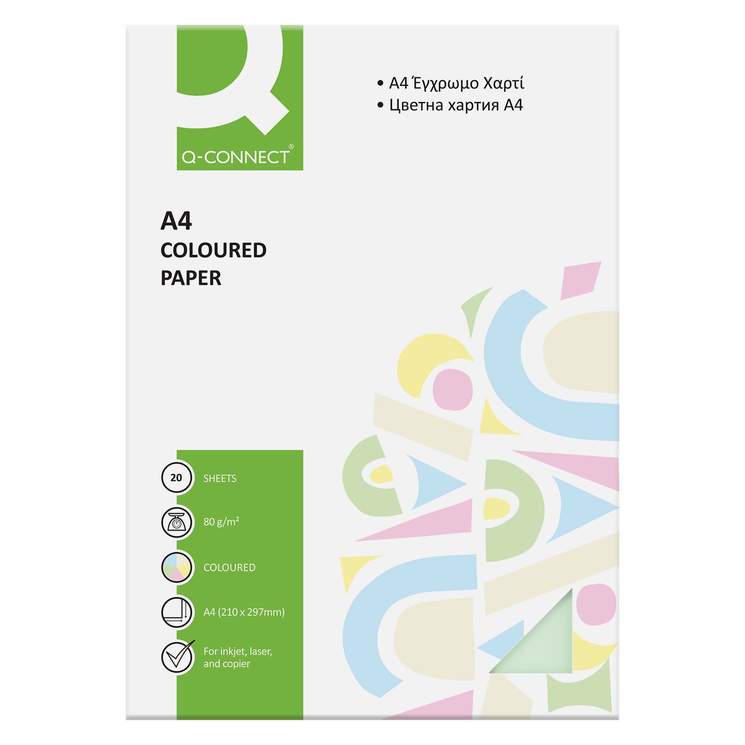 Χρωματιστό φωτοαντιγραφικό χαρτί A4 σε πακέτο των 20 φύλλων απο την Q-Connect, για να ικανοποιείς τις καθημερινές ανάγκες στο σπίτι ή στη δουλειά με τον πιο εύκολο και οικονομικό τρόπο.