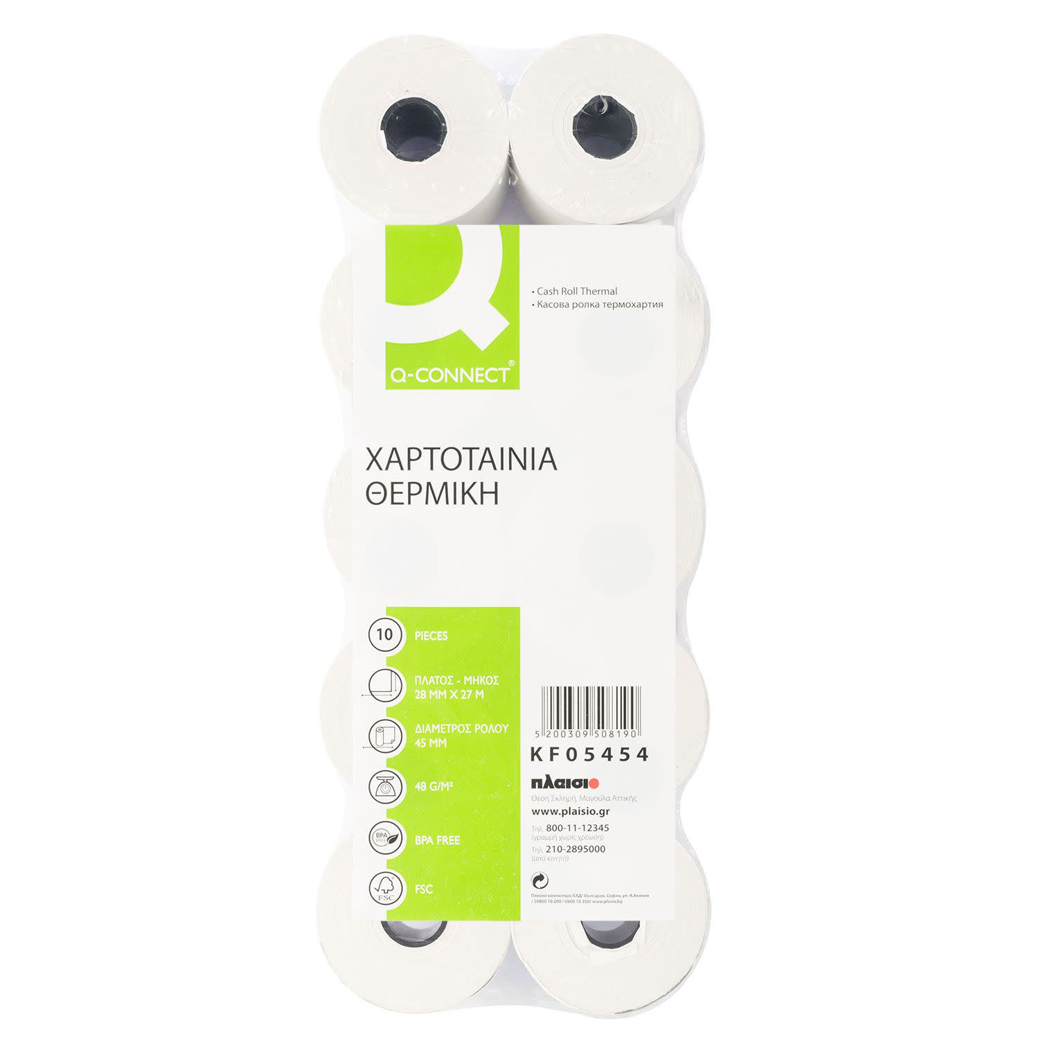 Θερμική χαρτοταινία Q-Connect διαστάσεων 28mmx27m, κατάλληλη για όλες τις θερμικές μηχανές εκτύπωσης!