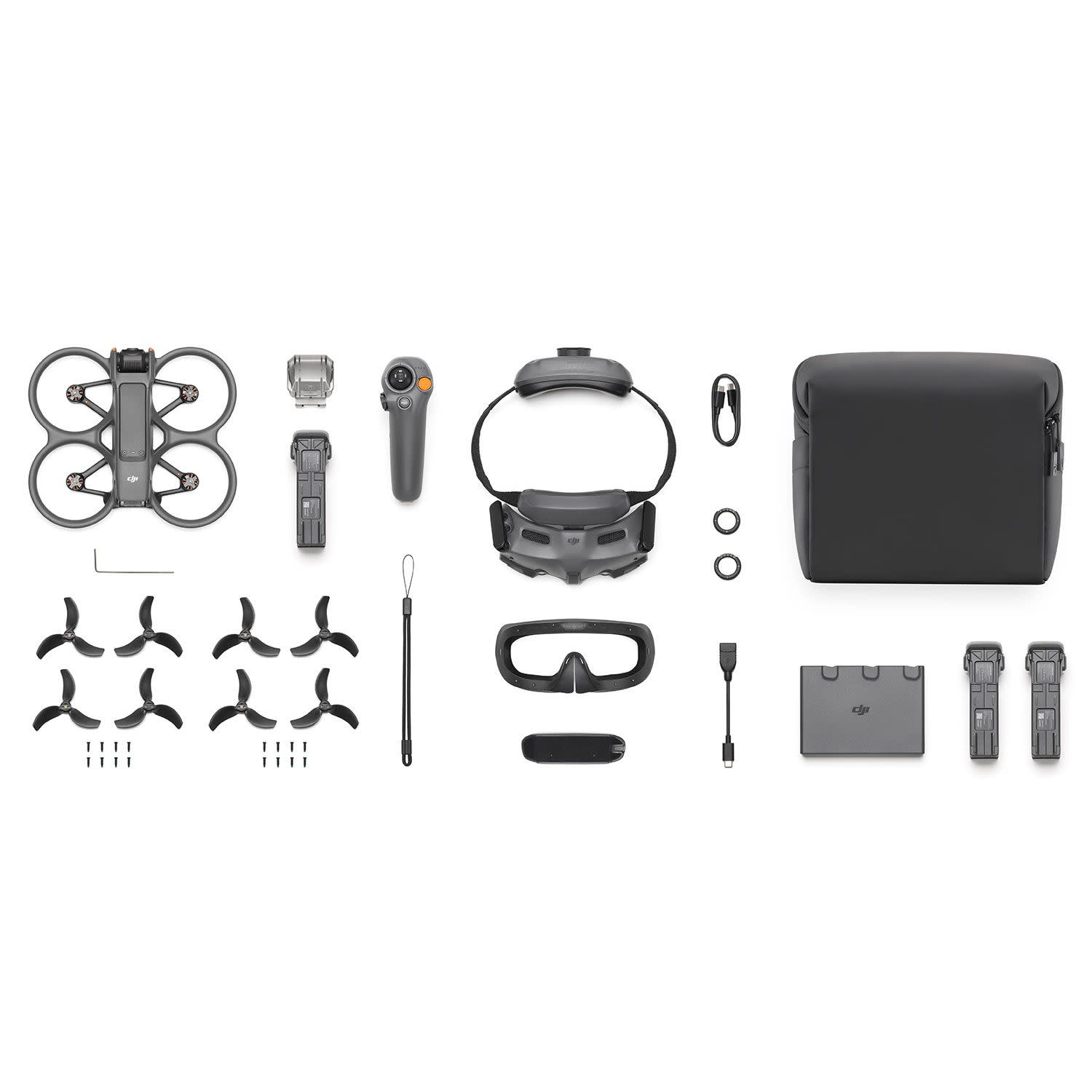 Η συσκευασία περιλαμβάνει: DJI Avata 2 (1x), Goggles 3, RC Motion 3, έξυπνη μπαταρία πτήσης DJI Avata (2x), 2way Charging Hub, θήκη μεταφοράς, έλικες DJI Avata (2x ζεύγη), DJI Avata Gimbal Protector (1x), μετασχηματιστή DJI Avata (1x), καλώδιο PD τύπου C σε Type-C (1x), ένα κατσαβίδι και βίδες (7x M2).