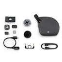Η θήκη φόρτισης (διαθέσιμη ανάλογα το bundle) χωράει άνετα δύο πομπούς και έναν δέκτη. Κάθε πομπός εφαρμόζει με το αντιανεμικό και είτε με το μαγνητάκι είτε με το κλιπ — χωρίς να χρειάζεται να τα αφαιρείς. Όταν οι πομποί αποθηκεύονται με τα κλιπ, το καπάκι έχει επίσης χώρο για τους μαγνήτες και το καλώδιο ήχου, ώστε όλα να μένουν οργανωμένα και έτοιμα για χρήση.