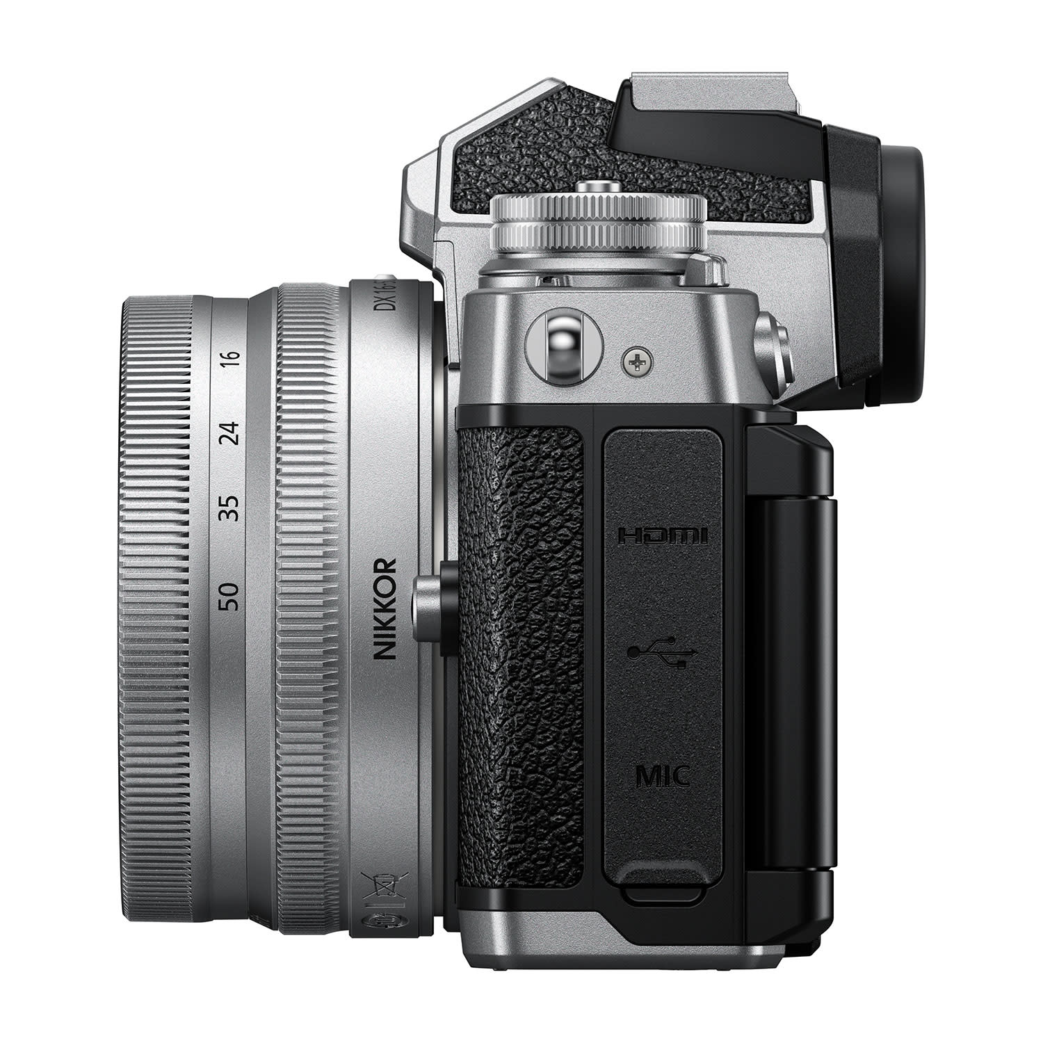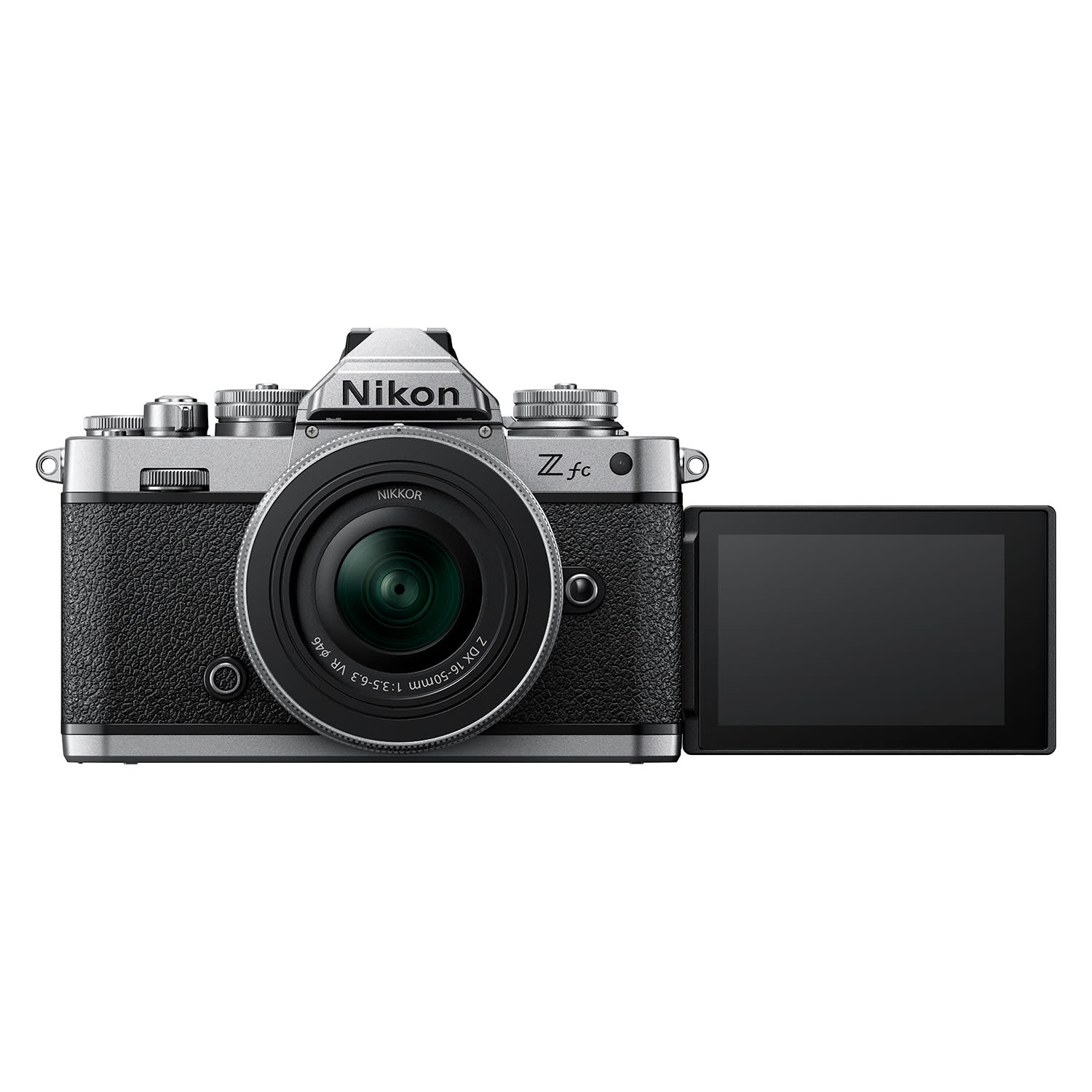 Μαύρο σώμα με ανάγλυφη υφή. Σκελετός από ασημί μέταλλο με διακριτική υφή. Η φωτογραφική μηχανή mirrorless Z fc έχει στιλ εφάμιλλο των κλασικών φωτογραφικών Nikon SLR με φιλμ και η ειδική έκδοση του φακού NIKKOR Z έχει ανάλογη εμφάνιση. Όλα περιλαμβάνουν σχεδιαστικά στοιχεία από το παρελθόν. Και πραγματική δημιουργική ισχύ του παρόντος.