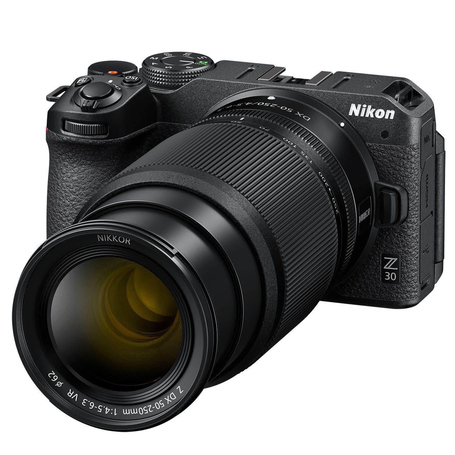 Kit διπλού zoom που περιλαμβάνει την Z 30 (με αισθητήρα DX CMOS 20,9 MP, τραβάει βίντεο ανάλυσης έως 4K UHD) και τους φακούς NIKKOR Z DX 16-50mm f/3.5-6.3 VR και NIKKOR Z DX 50-250mm f/4.5-6.3 VR.