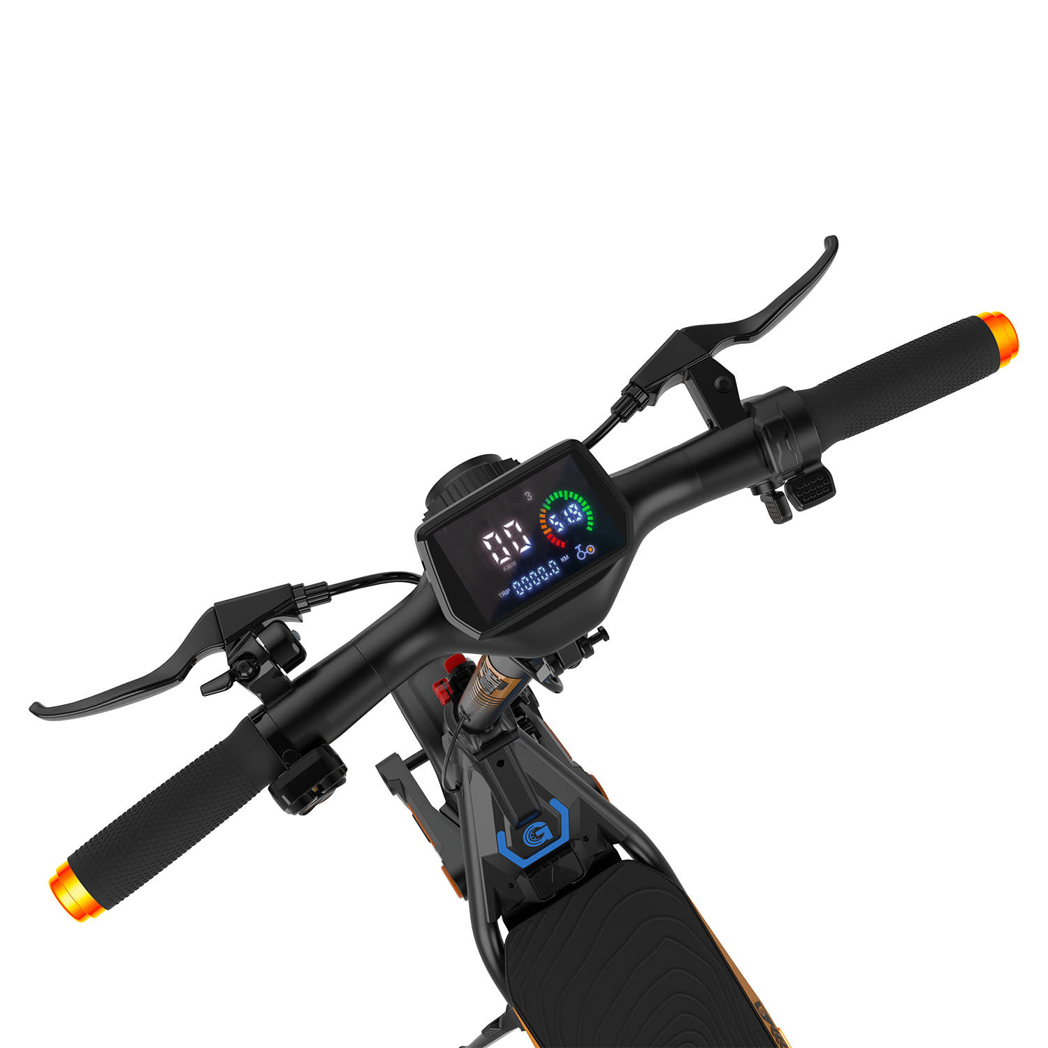 Διπλά δισκόφρενα για άμεση και αποτελεσματική πέδηση, πολυλειτουργική LED οθόνη που δείχνει ταχύτητα, υπόλοιπο μπαταρίας και κατάσταση οδήγησης. Το IPX5 προστατεύει από ψιχάλες — ασφάλεια και πληροφορία στο χέρι σου.