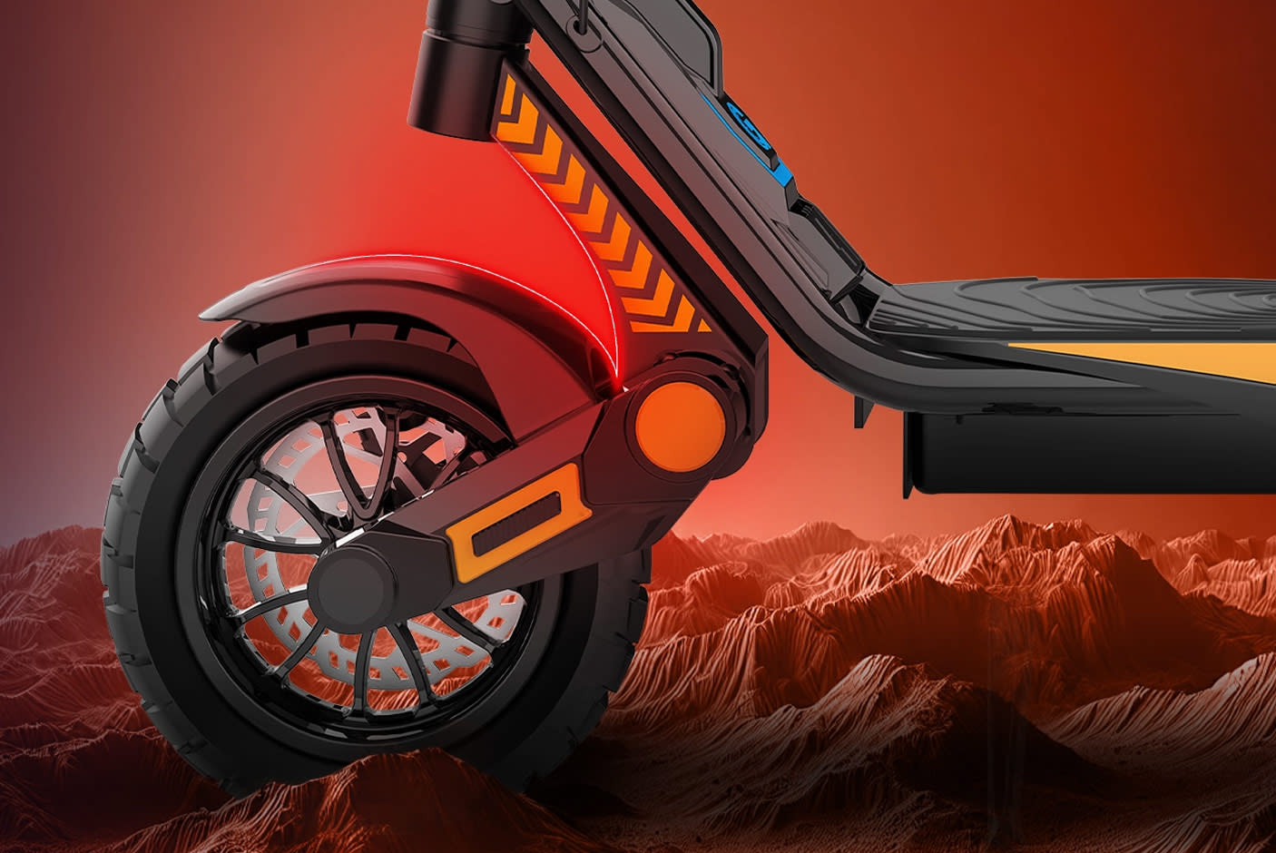 Η ανάρτηση C-fork απορροφά αποτελεσματικά τους κραδασμούς, ενώ τα 10" ελαστικά προσφέρουν σταθερότητα και καλύτερη πρόσφυση σε ανώμαλες επιφάνειες. Απολαμβάνεις ομαλή, άνετη οδήγηση ακόμα και στους δρόμους με λακκούβες.