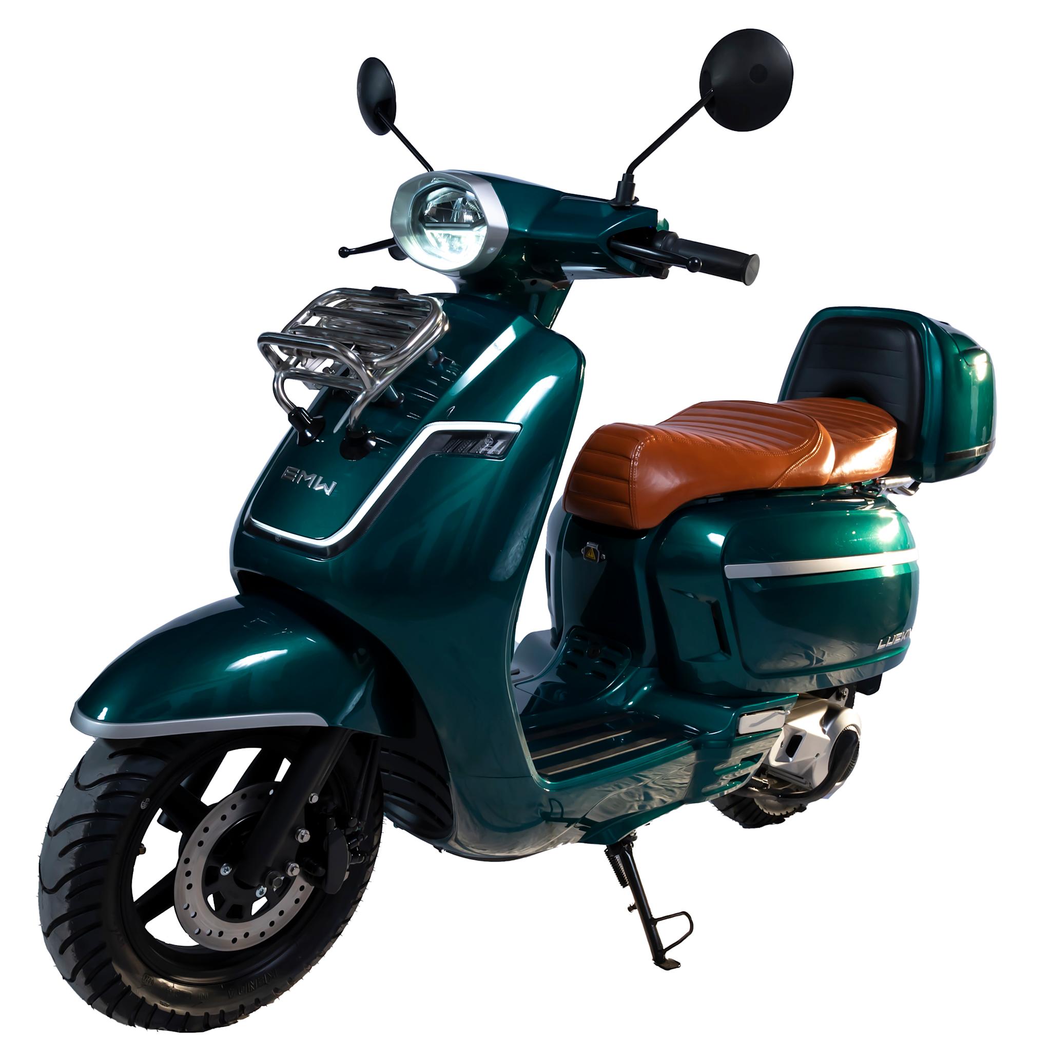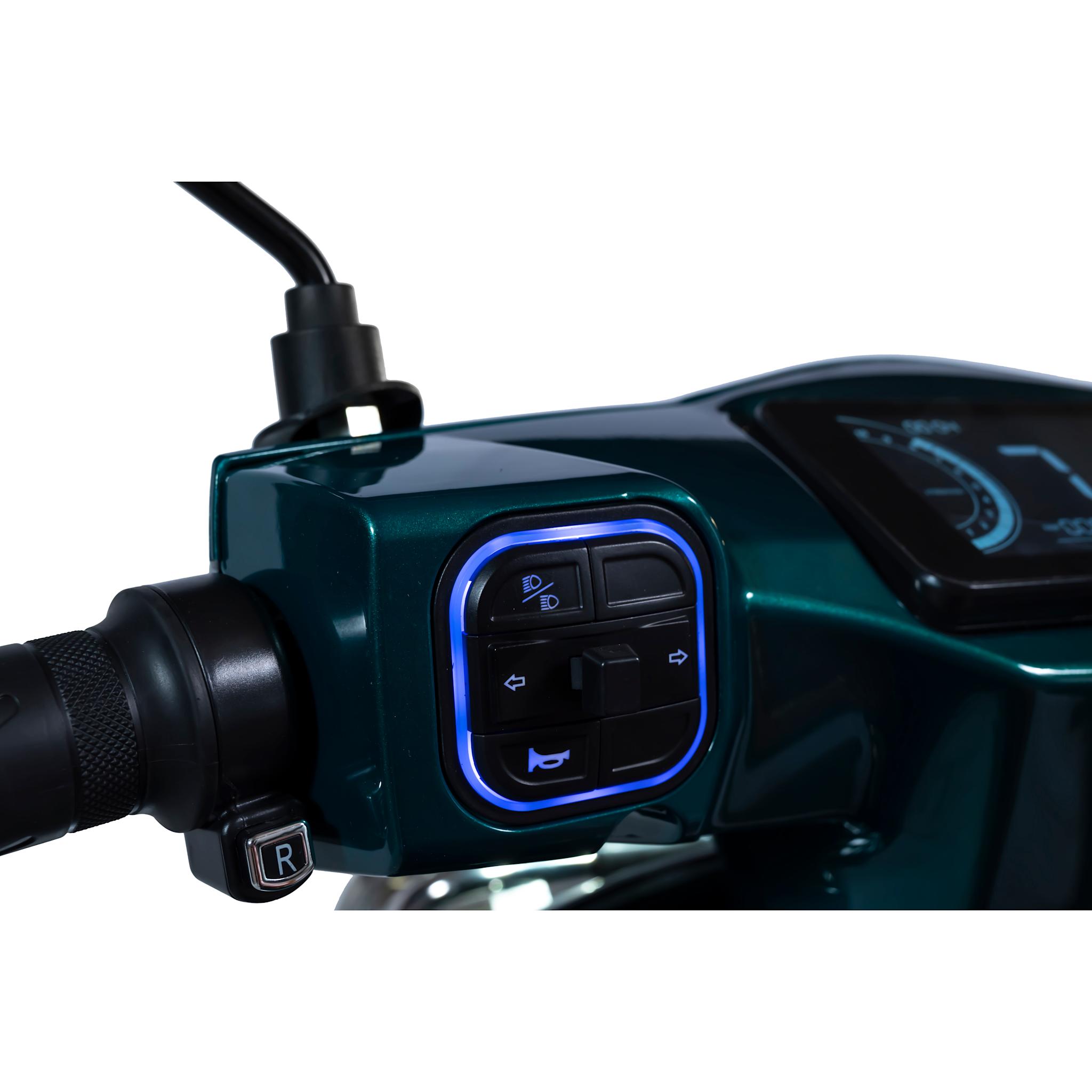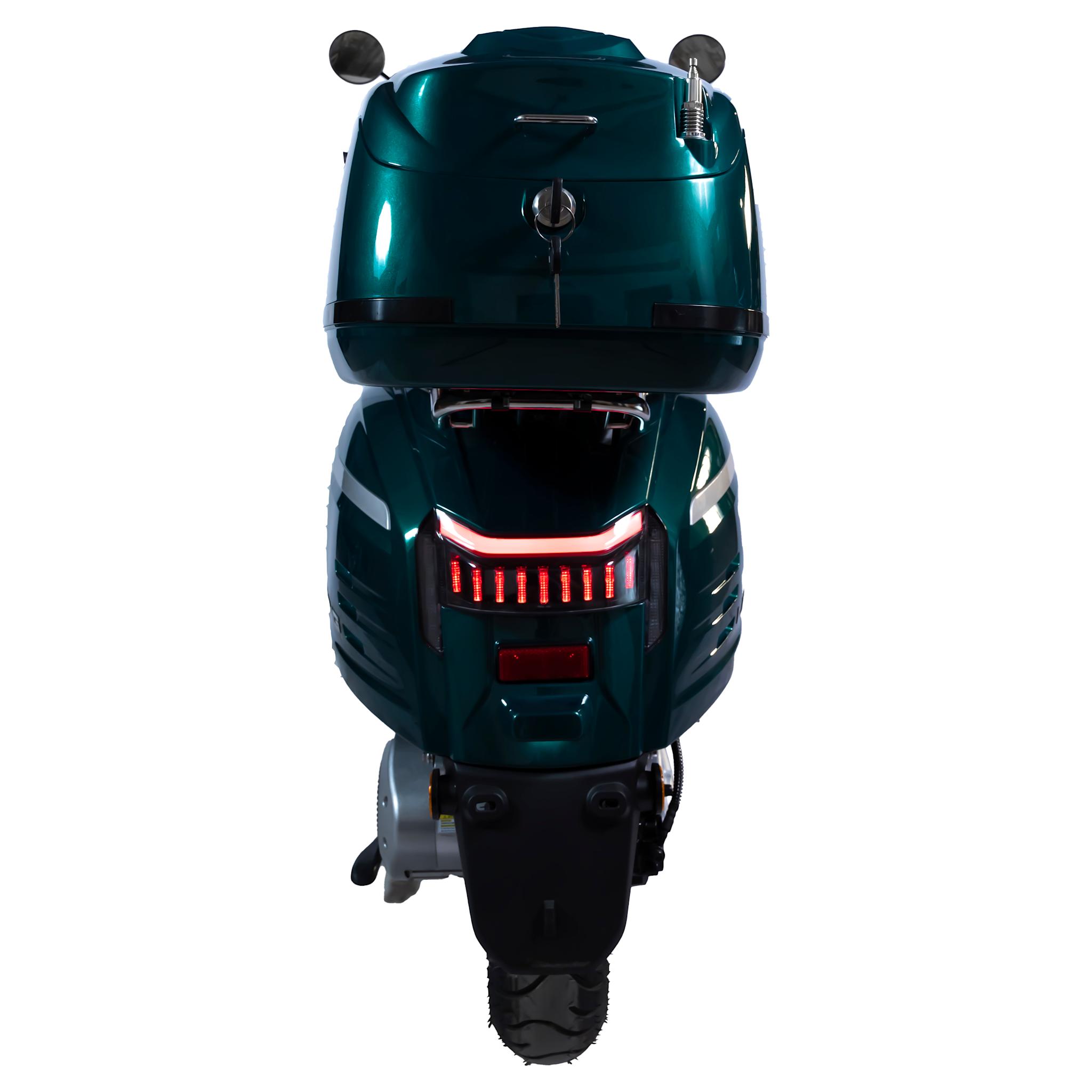 Ηλεκτρικό μηχανάκι με προβολείς LED, φλας μπρος-πίσω, ισχυρό κινητήρας QS Hub και διπλή αποσπώμενη μπαταρία με ταχυφορτιστή. Τελική ταχύτητα 45 km/h και αυτονομία 180-200 km.