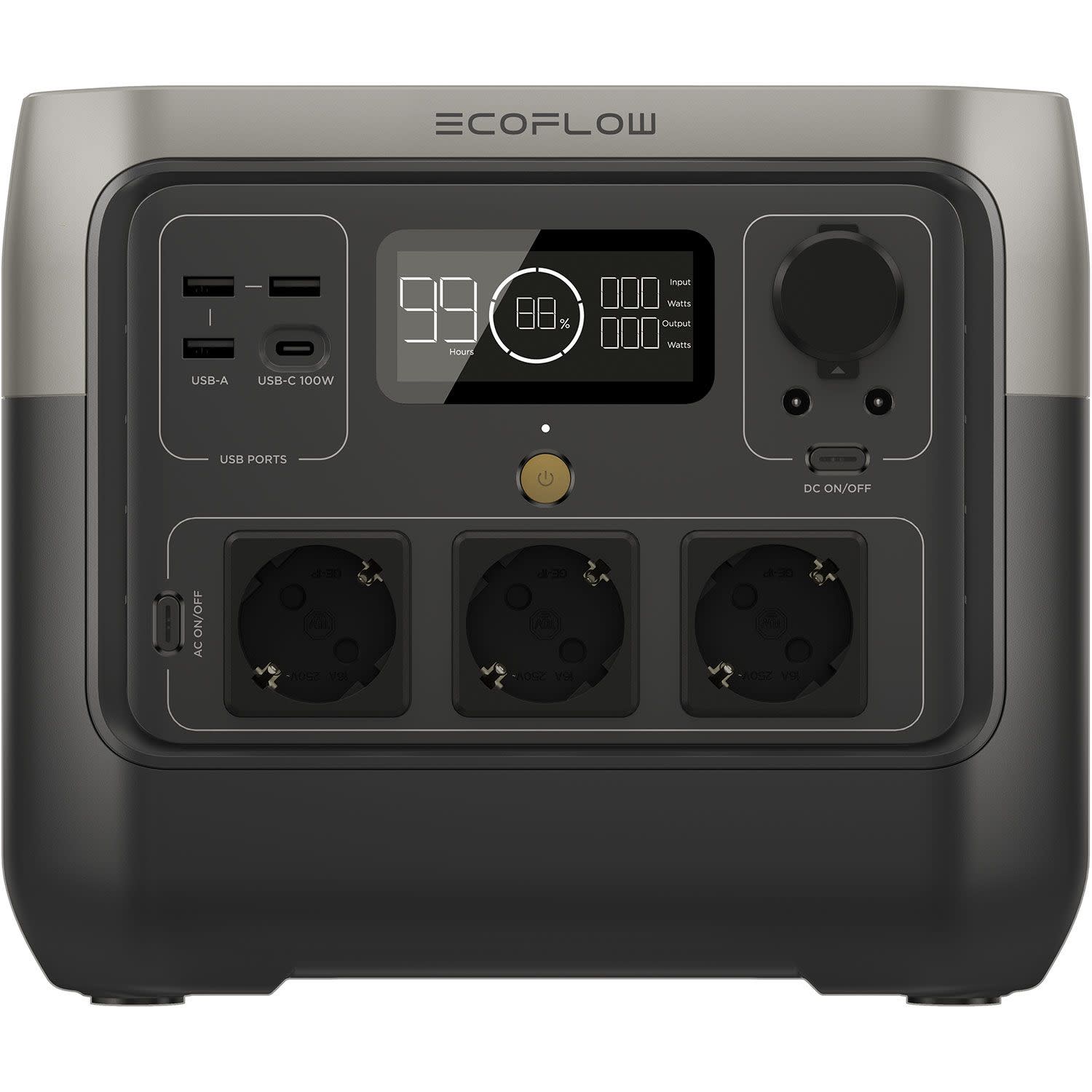 - 1x DC5521 / 1x USB-A 12W / 1x AC / 1x USB-C 100W / 1x DC