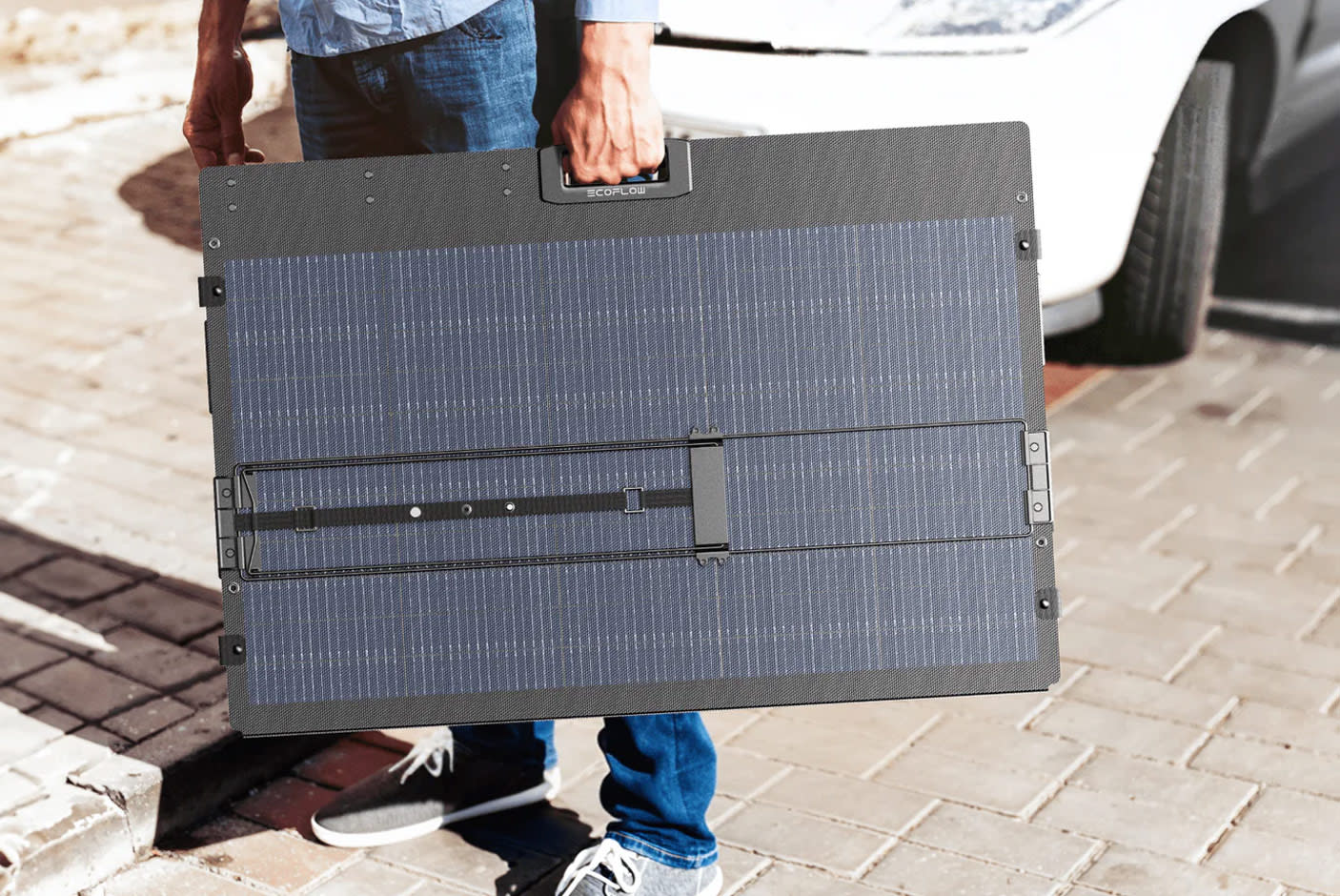 Με βάρος μόλις 10,2 κιλά και κομψό, εύκολο στη μεταφορά σχεδιασμό, το πάνελ διπλώνει και αποθηκεύεται εύκολα. Η ρυθμιζόμενη βάση επιτρέπει την τοποθέτηση σε ιδανική γωνία για μέγιστη απορρόφηση ηλιακού φωτός.