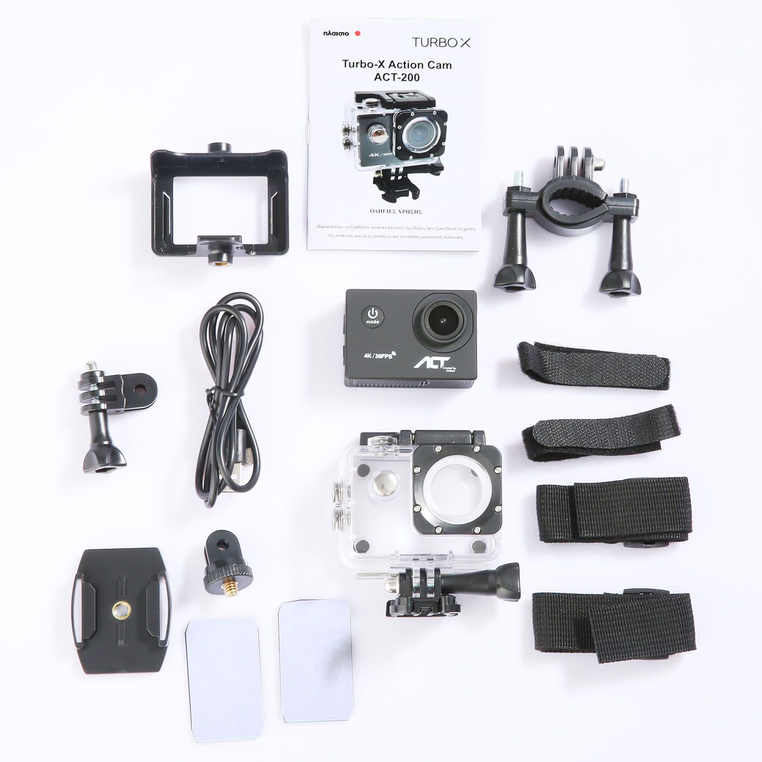 Με δυνατότητα λήψης βίντεο 4K30, ευρυγώνιο φακό 150 μοιρών, οθόνη 2 ιντσών, Time-Lapse Μode και ασύρματη συνδεσιμότητα μέσω Wi-Fi, η Turbo-X ACT-200 είναι φτιαγμένη για περιπέτεια!