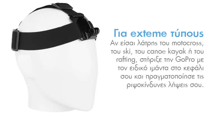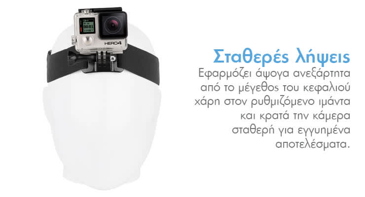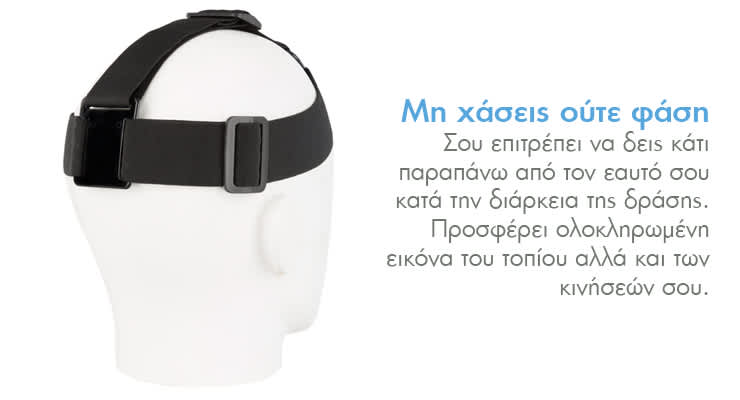 Πλέον, δεν χρειάζεται να κρατάς την camera στα χέρια. Στήριξέ τη με τον ειδικό ιμάντα στο κεφάλι σου και άστην να καταγράφει όσα ζεις.