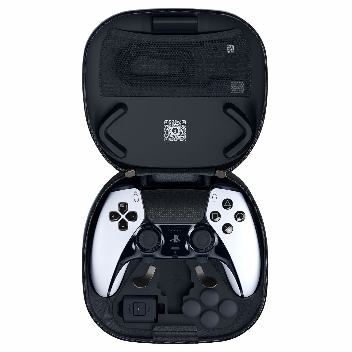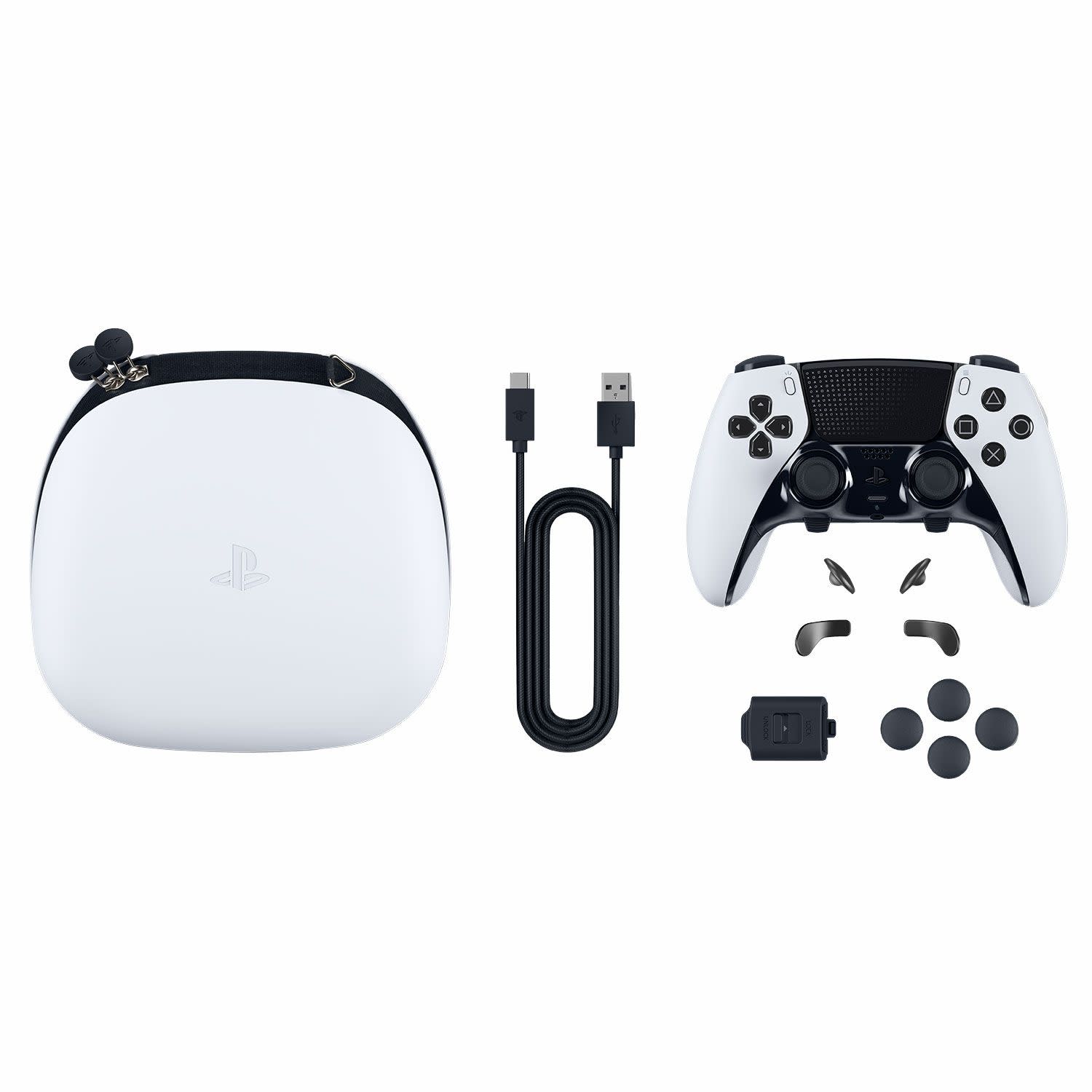 Στη συσκευασία περιλαμβάνονται: ασύρματο χειριστήριο DualSense Edge™, πλεκτό καλώδιο USB, 2x τυπικά καπάκια μοχλού, 2x ψηλά καπάκια μοχλού θόλου, 2x χαμηλά καπάκια μοχλού θόλου, 2x κουμπιά πίσω μισού θόλου, 2x κουμπιά πίσω σχήματος μοχλού, περίβλημα βύσματος και θήκη μεταφοράς.