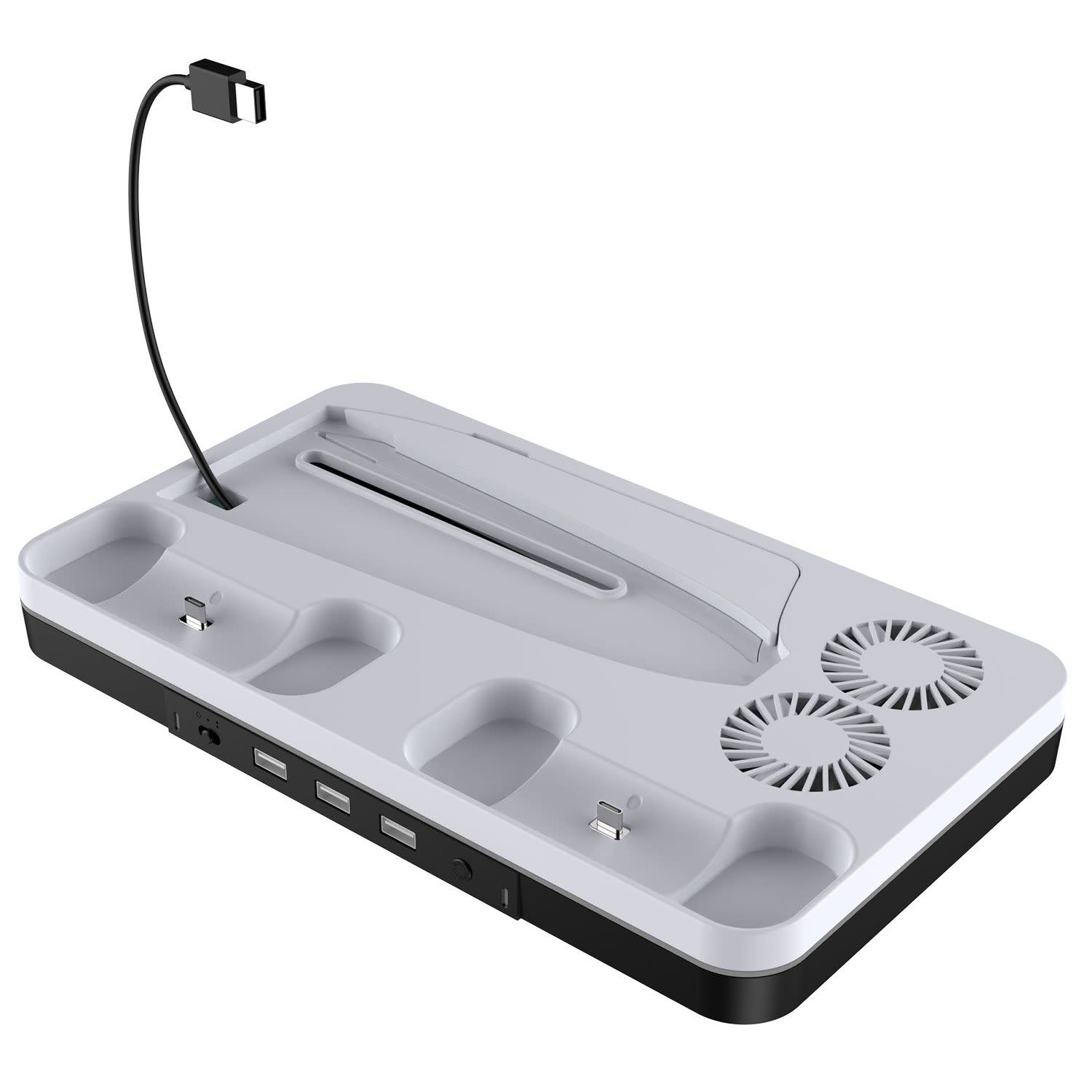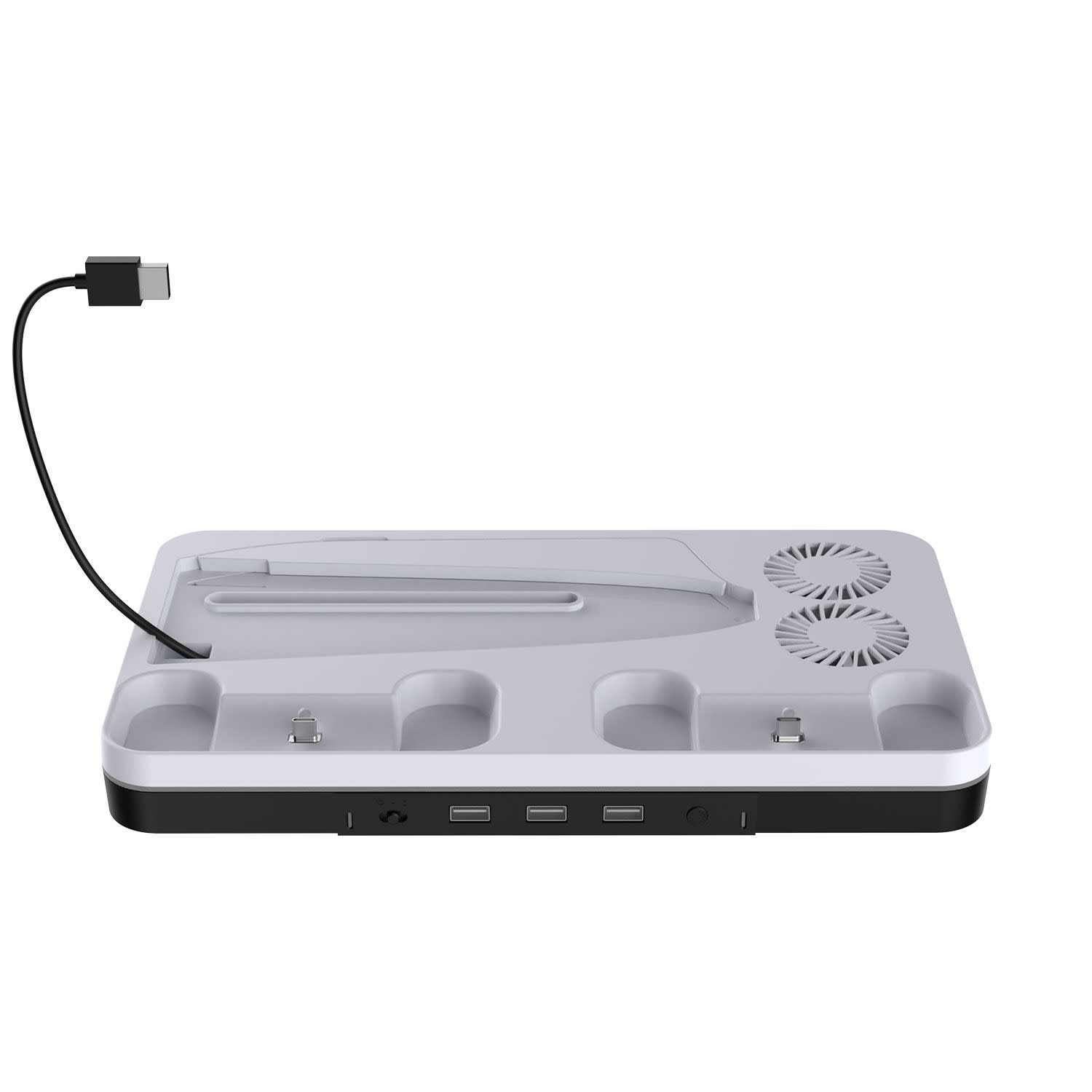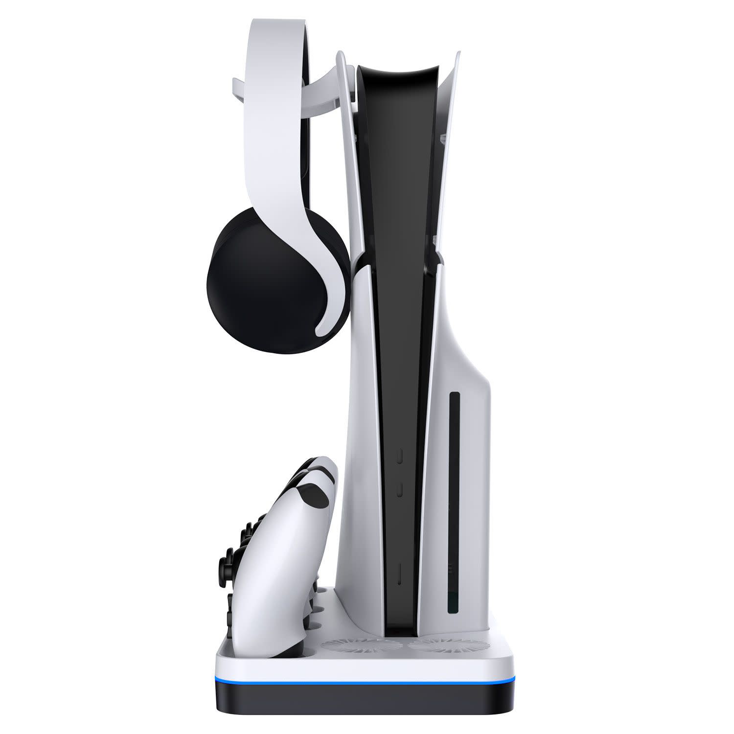 Συμβατό με τα νεότερα μοντέλα PS5™ (Slim Disc/Digital Edition), ενσωματώνει μπάρα φωτισμού RGB LED και περιλαμβάνει μία βάση κάθετης φόρτισης δύο θέσεων για ασύρματα χειριστήρια* DualSense™, τα οποία είναι σε θέση να φορτίζει ταυτόχρονα χωρίς πρόσθετα καλώδια. Παράλληλα, ενσωματώνει 3x θύρες USB 2.0 και ρυθμιζόμενο ανεμιστήρα — η ταχύτητα του οποίου αγγίζει ακόμα και τις 3.500 σ.α.λ.