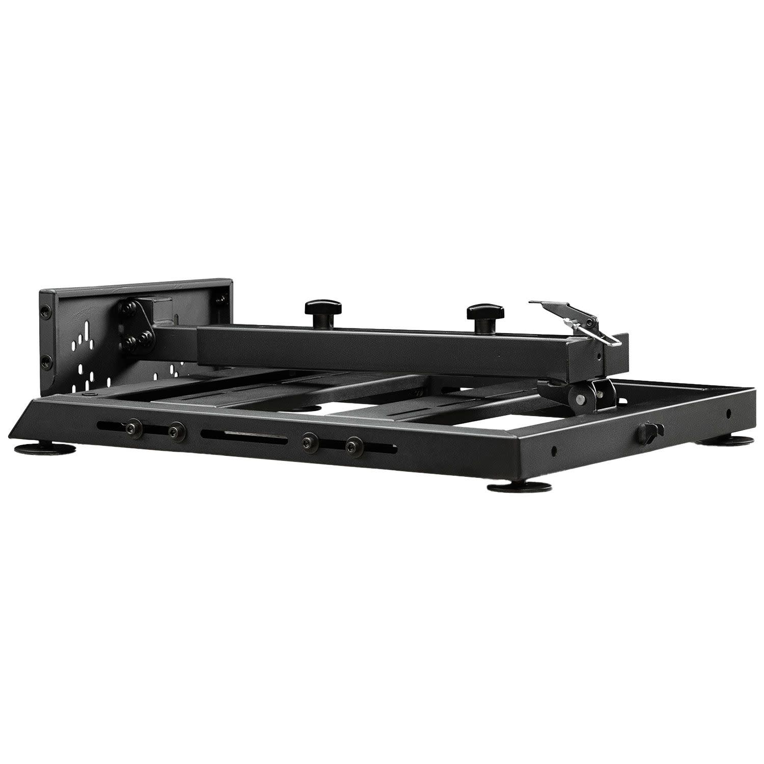 Με Premium κοπή με λέιζερ και συγκόλληση από ανθρακούχο χάλυβα σε Μαύρο Ματ, η πλάκα πεντάλ παρέχει έναν ισχυρό και ανθεκτικό σταθμό για κάθε πεντάλ μεγάλης εταιρίας, όπως τα Logitech®, Thrustmaster® & Fanatec®. Με τη ρύθμιση της πλάκας προς τα εμπρός και προς τα πίσω, ο χρήστης είναι σε θέση να επιτύχει την πιο ρεαλιστική τοποθέτηση των πεντάλ του.