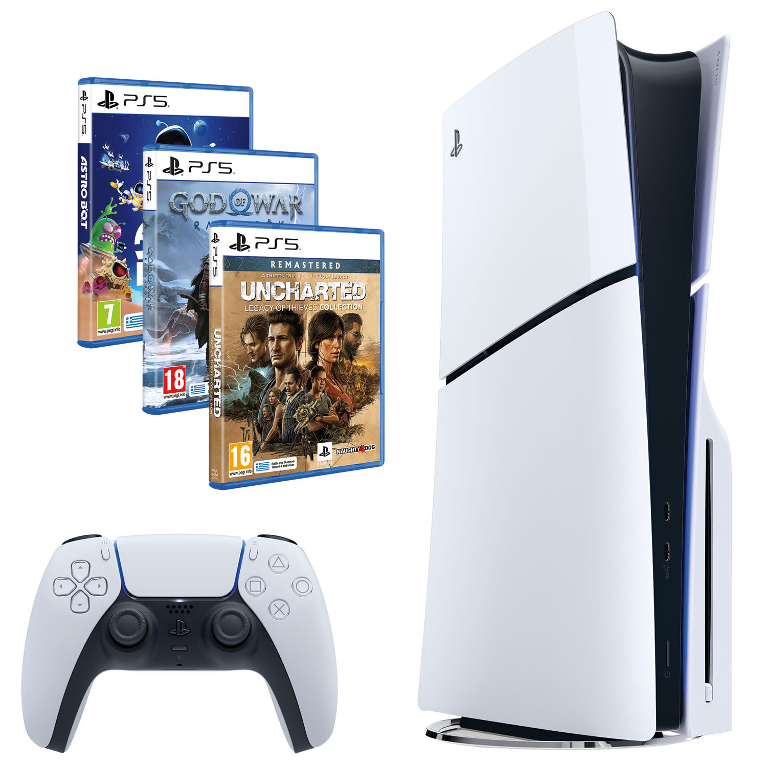 Στο πακέτο περιέχονται τα: Astro Bot, Uncharted: Legacy of Thieves Collection, Sony God of War: Ragnarok Standard Edition.