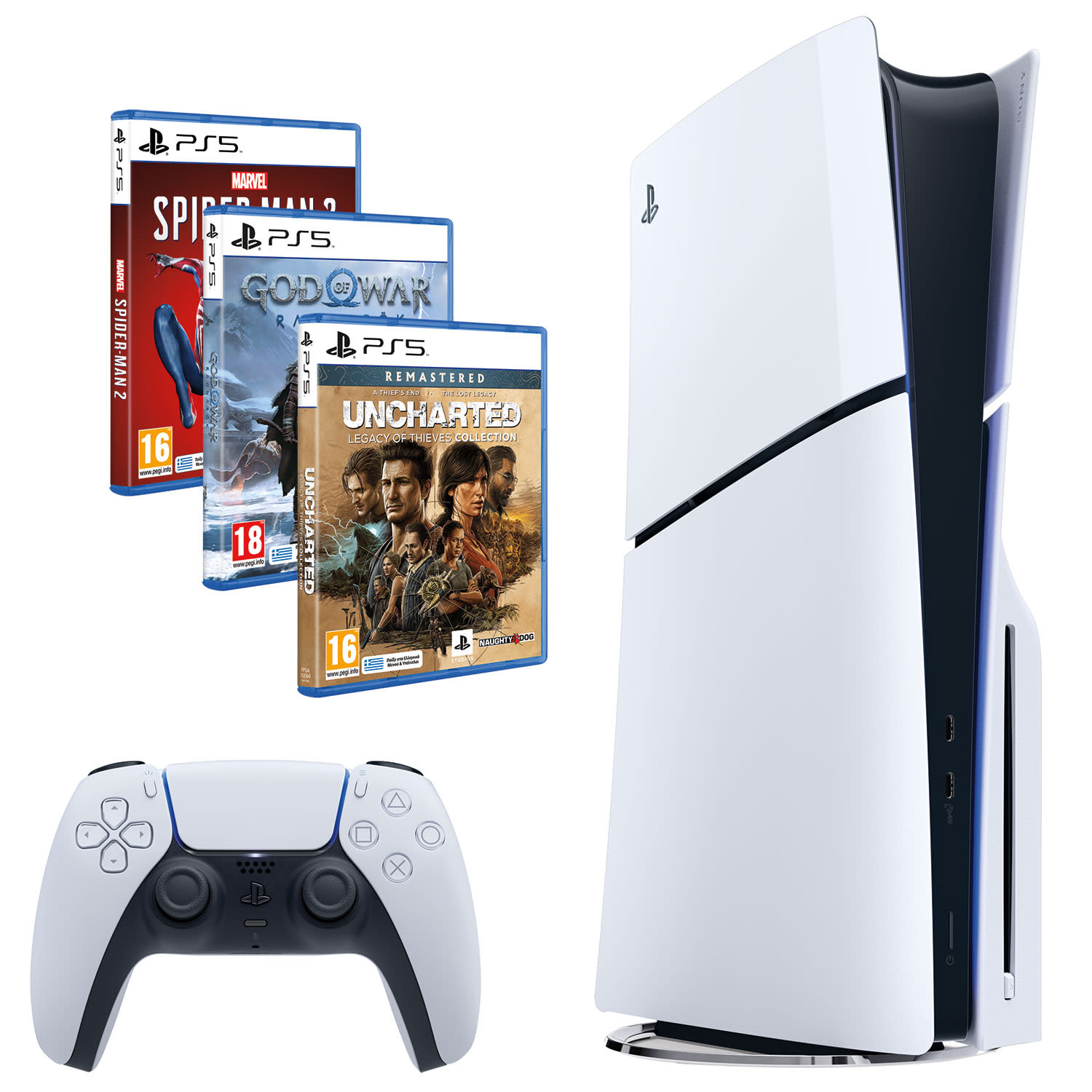 Στο πακέτο περιέχονται τα: Marvel's Spider-Man 2, Uncharted: Legacy of Thieves Collection, God of War: Ragnarok Standard Edition .