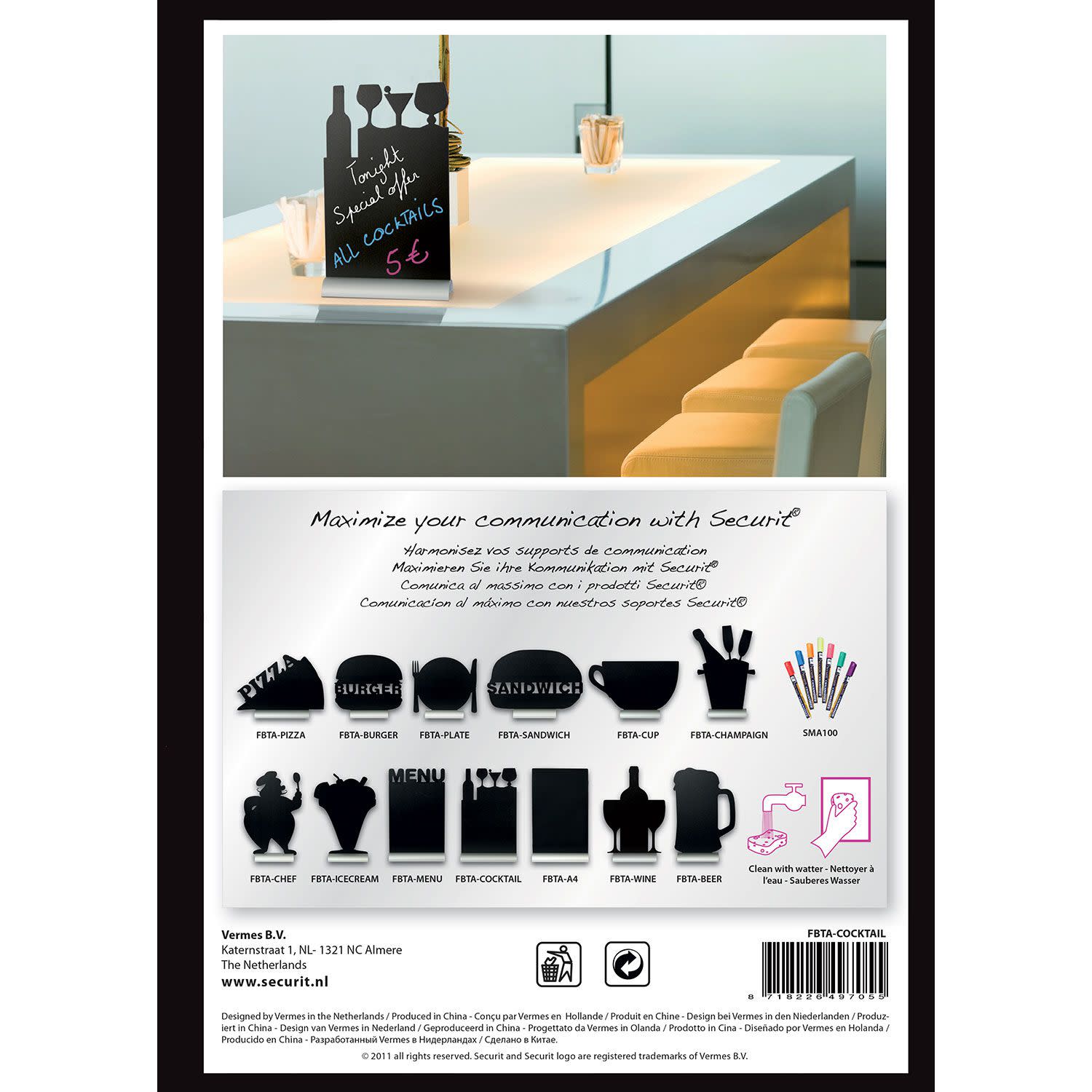Δώσε μια μοντέρνα και διασκεδαστική πινελιά στα τραπέζια του μπαρ ή του εστιατορίου σου με τον μαυροπίνακα τραπεζιού σε σχήμα cocktail της Securit. Ιδανικός για την προβολή ειδικών προσφορών, cocktail lists ή προσωπικών μηνυμάτων που θα εντυπωσιάσουν τους πελάτες.