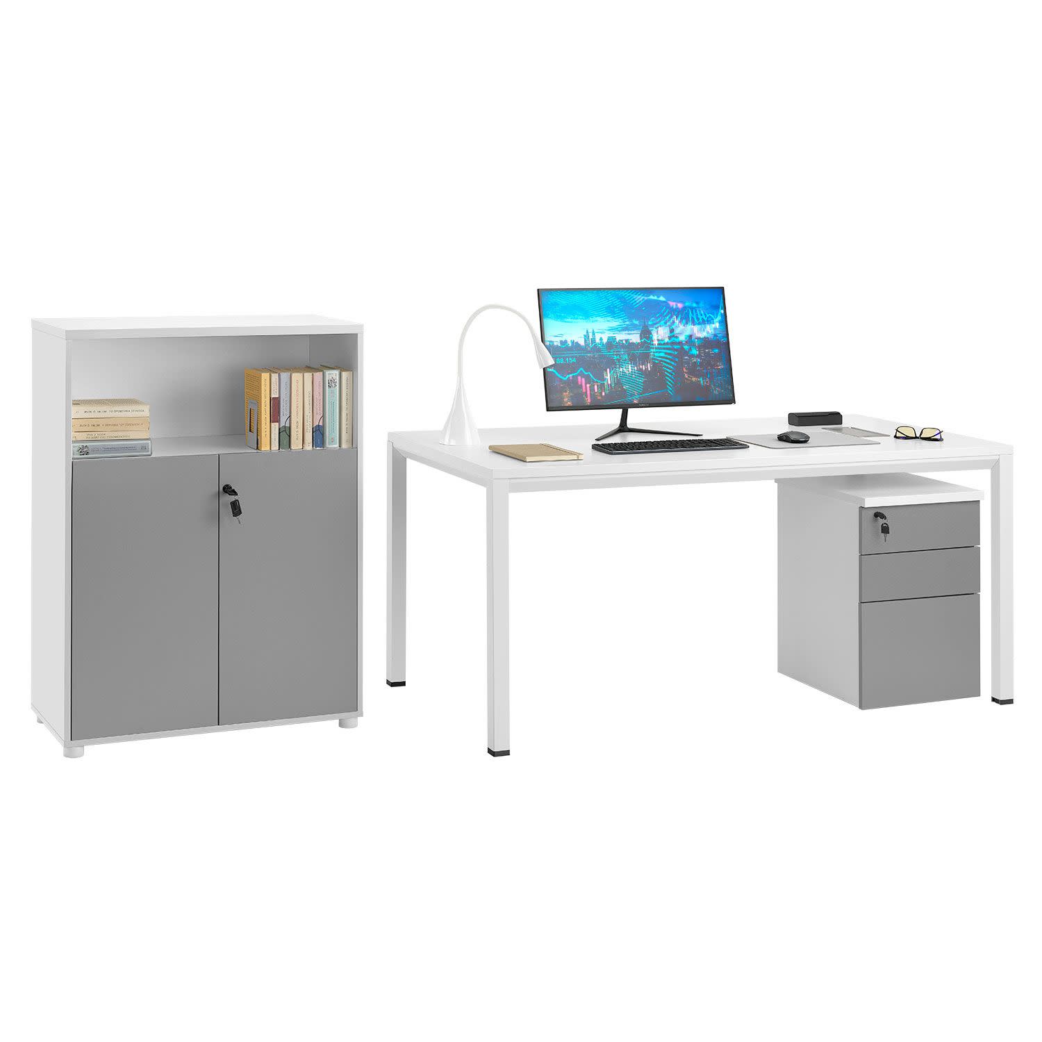 Η επιφάνεια του γραφείου είναι από μελαμίνη πάχους 25mm, ενώ τα λευκά πόδια του είναι κατασκευασμένα από μέταλλο.