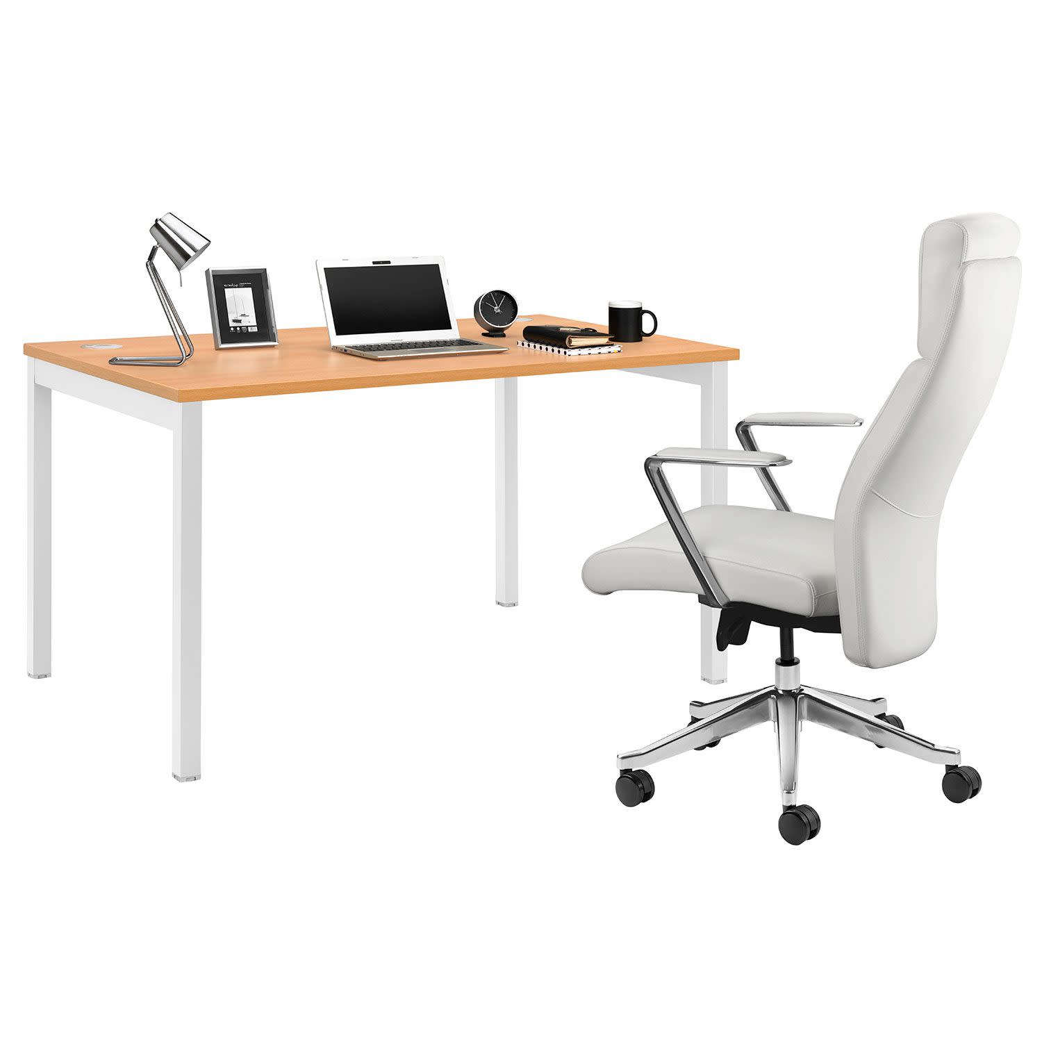 Quadrifoglio Γραφείο Column Beech (Λευκός Σκελετός) 140x80 cm