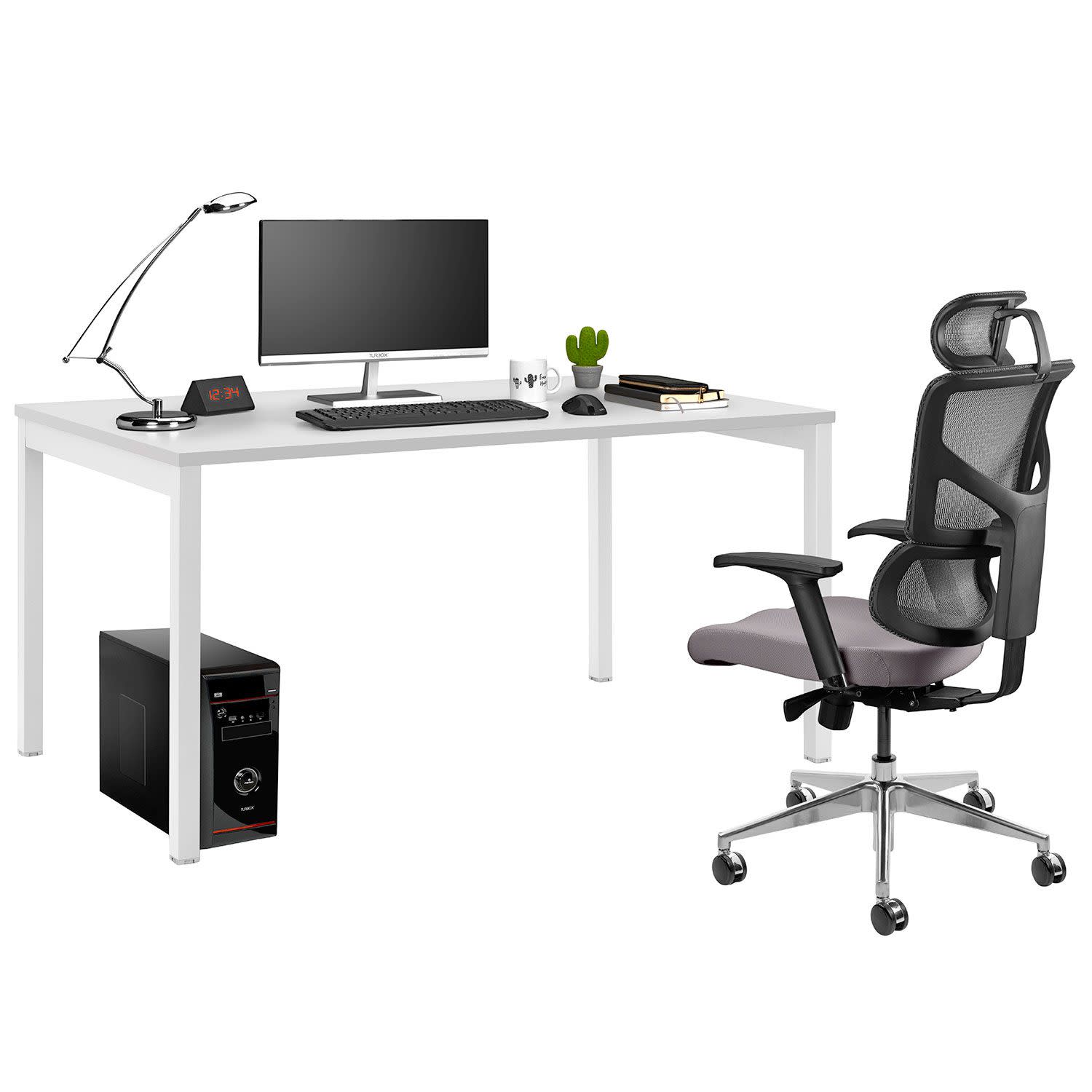 Η επιφάνεια του γραφείου είναι από μελαμίνη πάχους 25mm, ενώ τα λευκά πόδια του είναι κατασκευασμένα από μέταλλο.